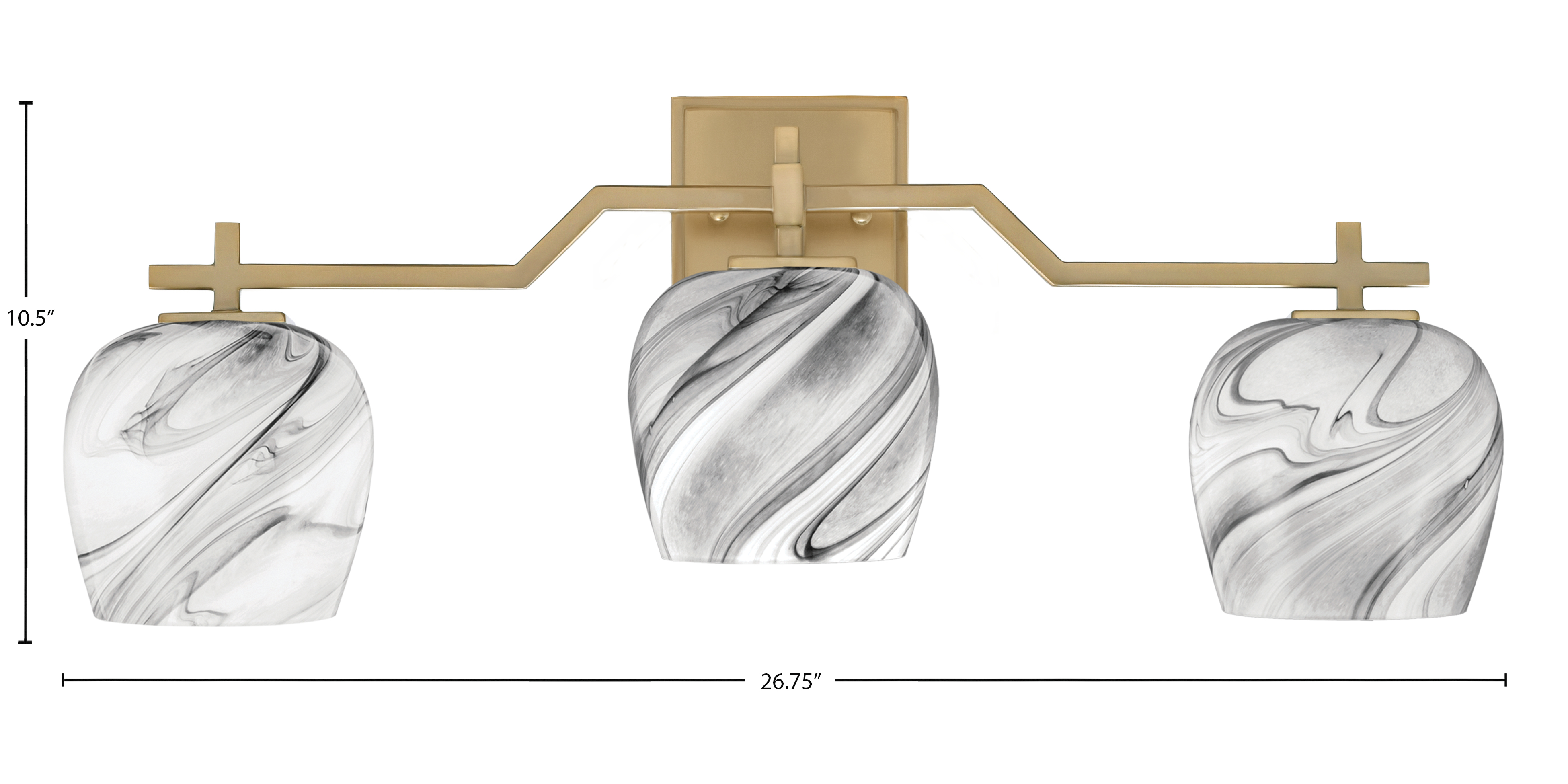 Toltec Lighting 2313-NAB-4819 Corbin 3 Light Bath Bar, New Age Brass Finish, 6″ Onyx Swirl Glass