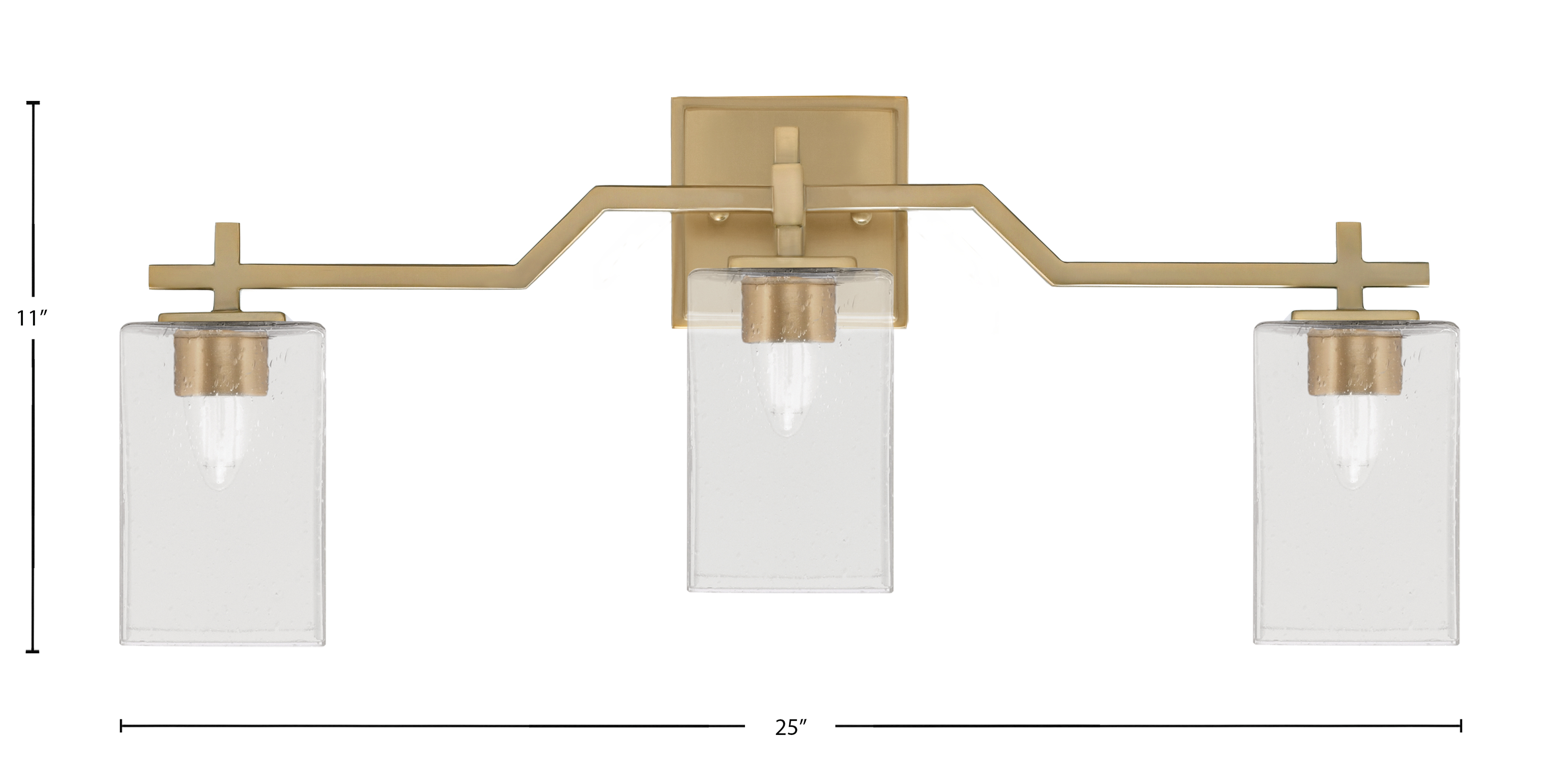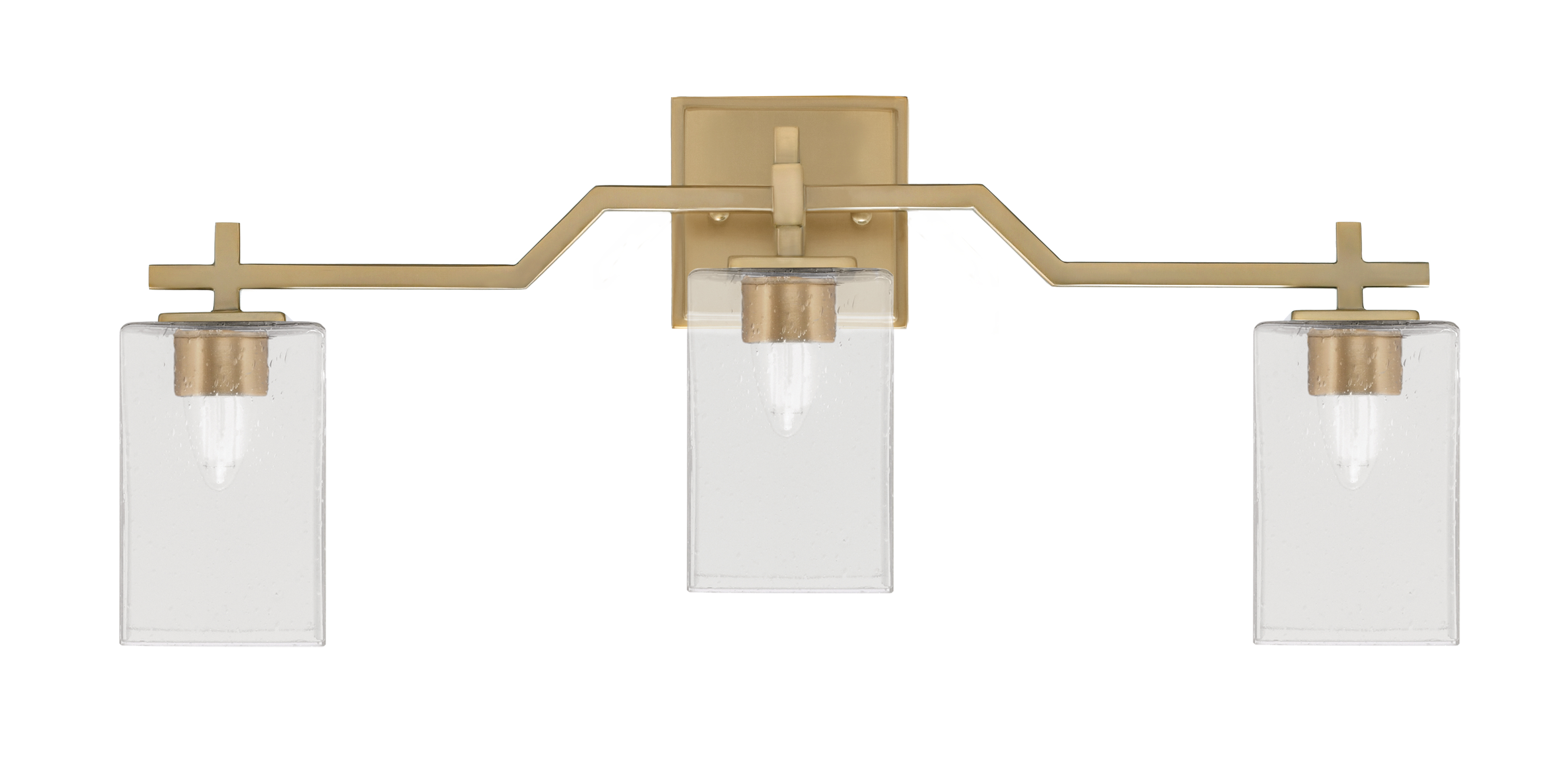 Toltec Lighting 2313-NAB-530 Corbin 3 Light Bath Bar, New Age Brass Finish, 4″ Square Clear Bubble Glass