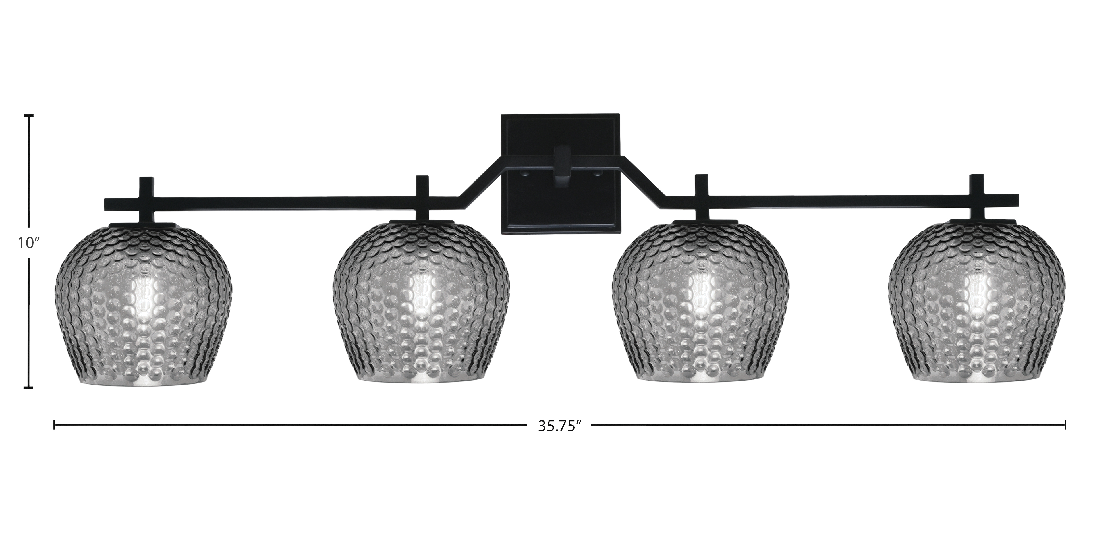Toltec Lighting 2314-MB-4602 Corbin 4 Light Bath Bar, Matte Black Finish, 6″ Smoke Textured Glass