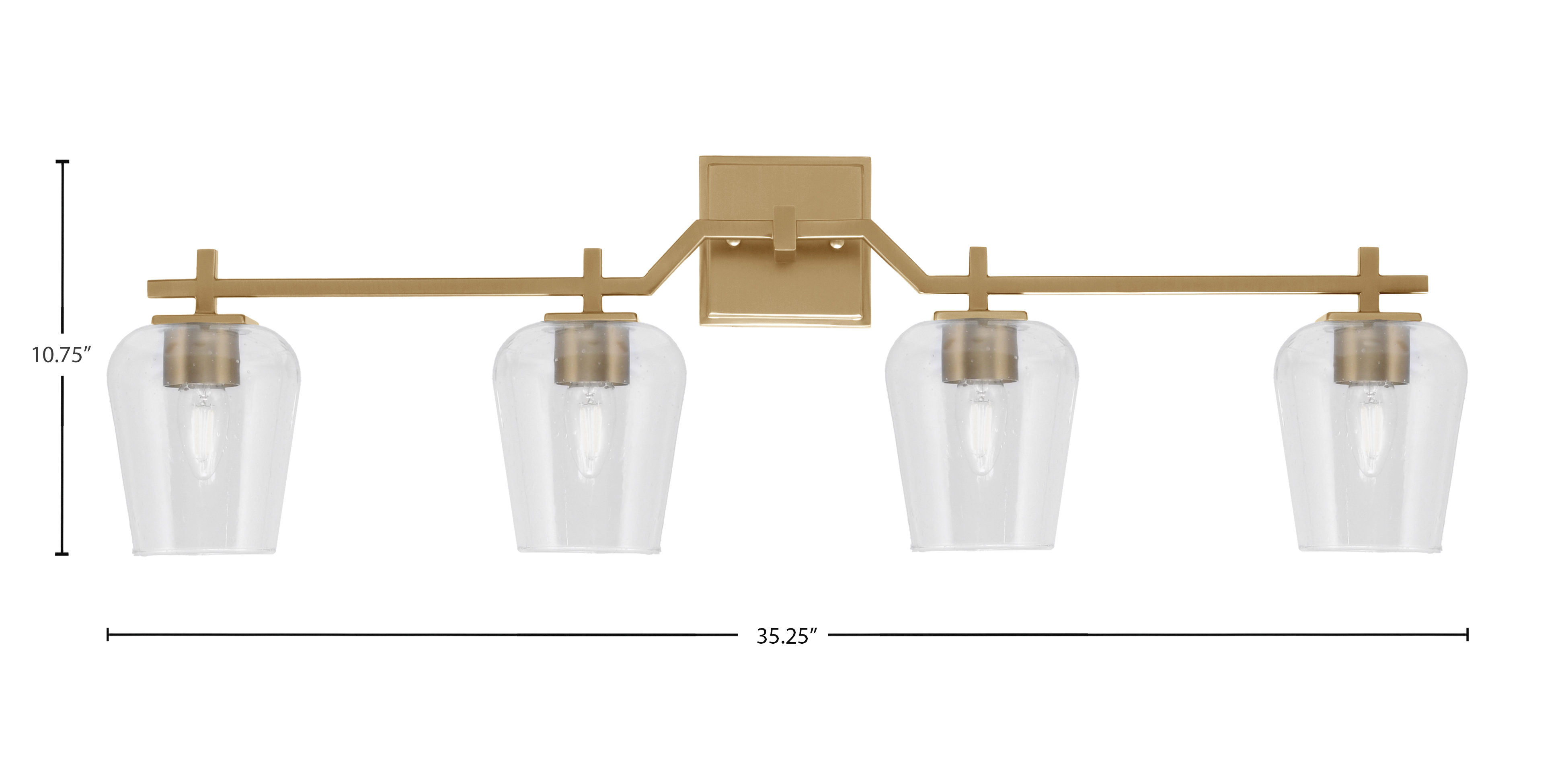 Toltec Lighting 2314-NAB-210 Corbin 4 Light Bath Bar, New Age Brass Finish, 5″ Clear Bubble Glass