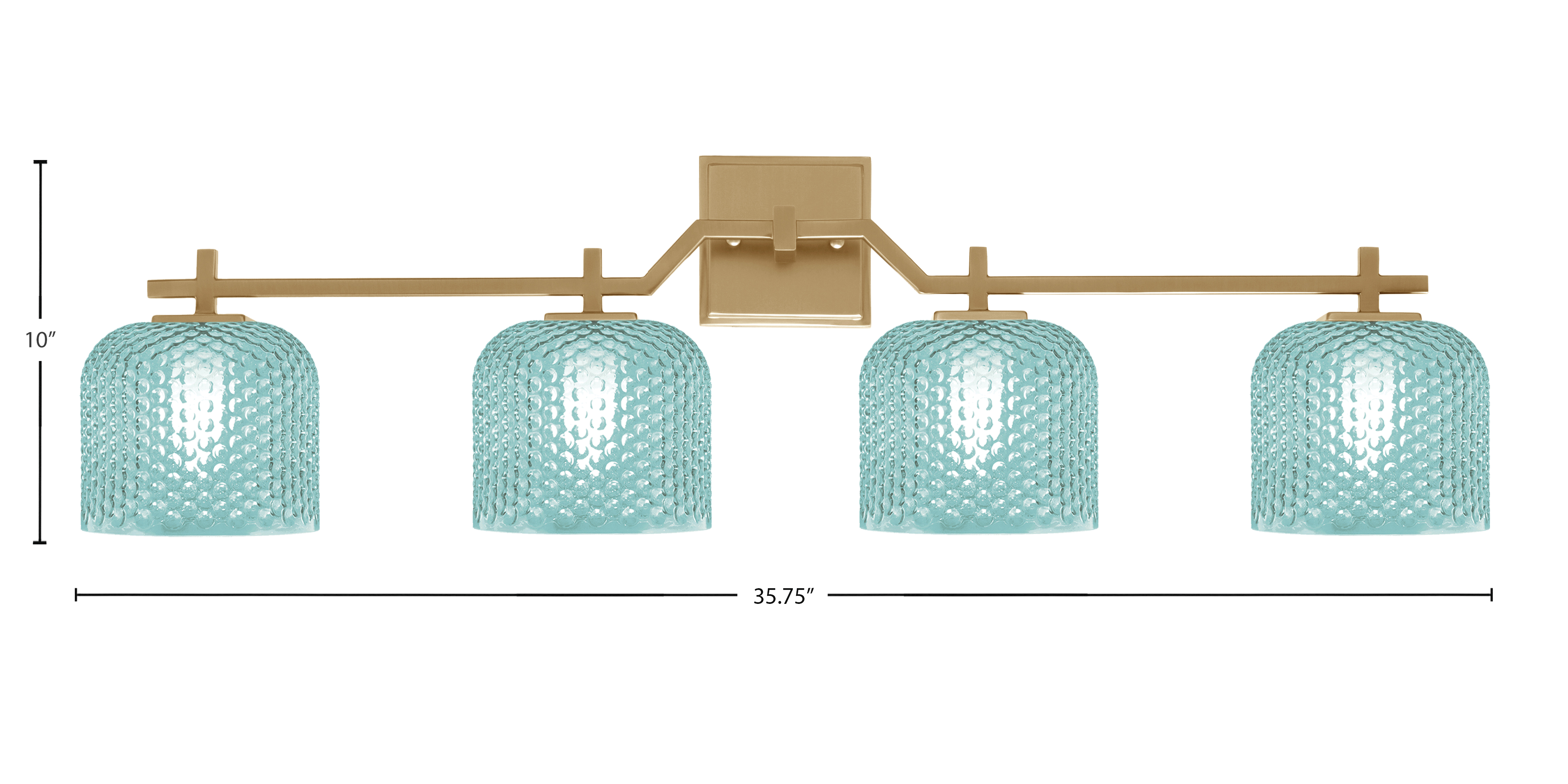 Toltec Lighting 2314-NAB-4615 Corbin 4 Light Bath Bar, New Age Brass Finish, 6″ Turquoise Textured Glass