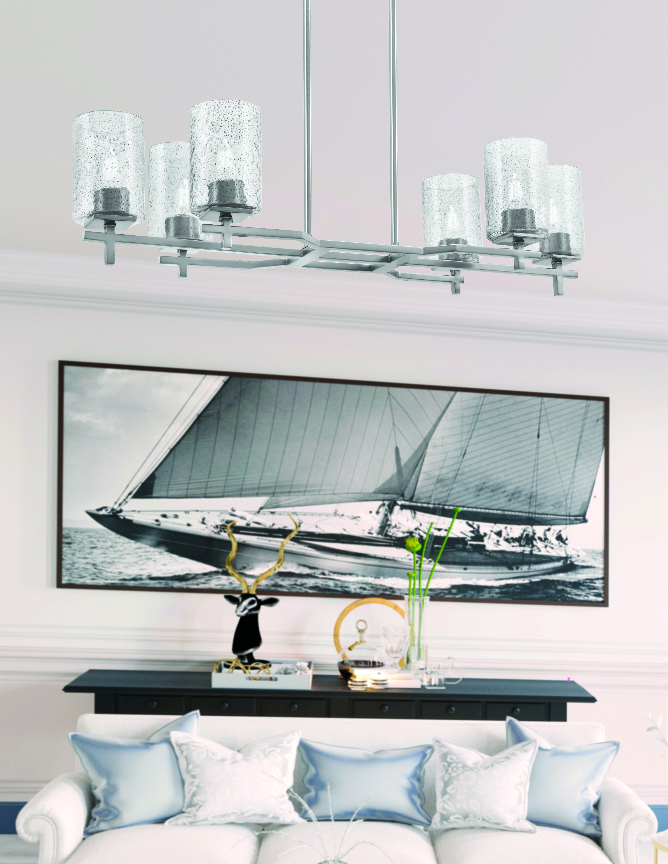 Toltec Lighting 2326-GP-3002 Corbin 6 Light Island Light, Graphite Finish, 4″ Smoke Bubble Glass