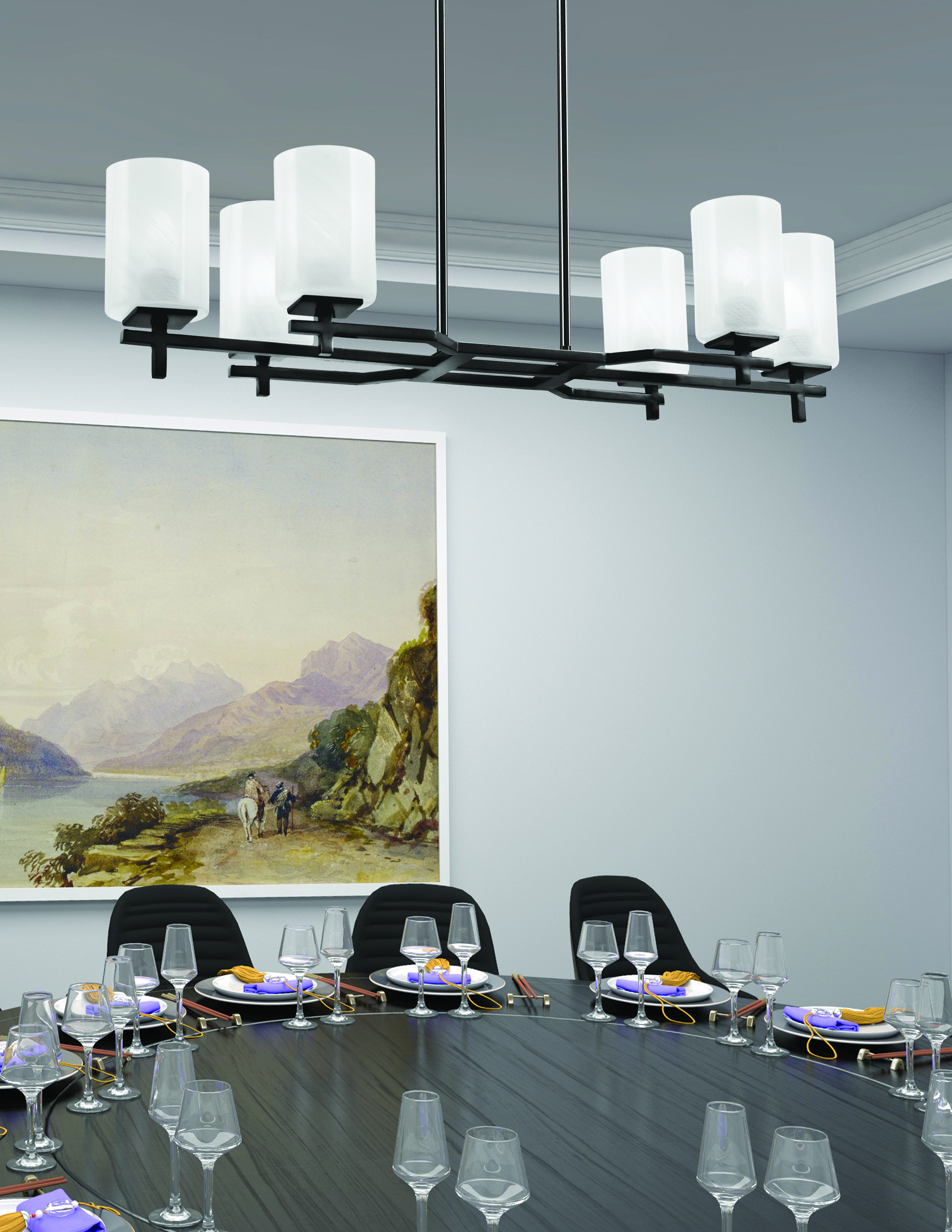 Elevate your space with the Corbin 6-Light Island Light, featuring a bold Matte Black finish and six 4″ white marble glass shades. The soft, marbled texture of the glass creates a warm, diffused glow that complements the sleek, industrial frame. Perfect for kitchens, dining areas, or modern interiors.