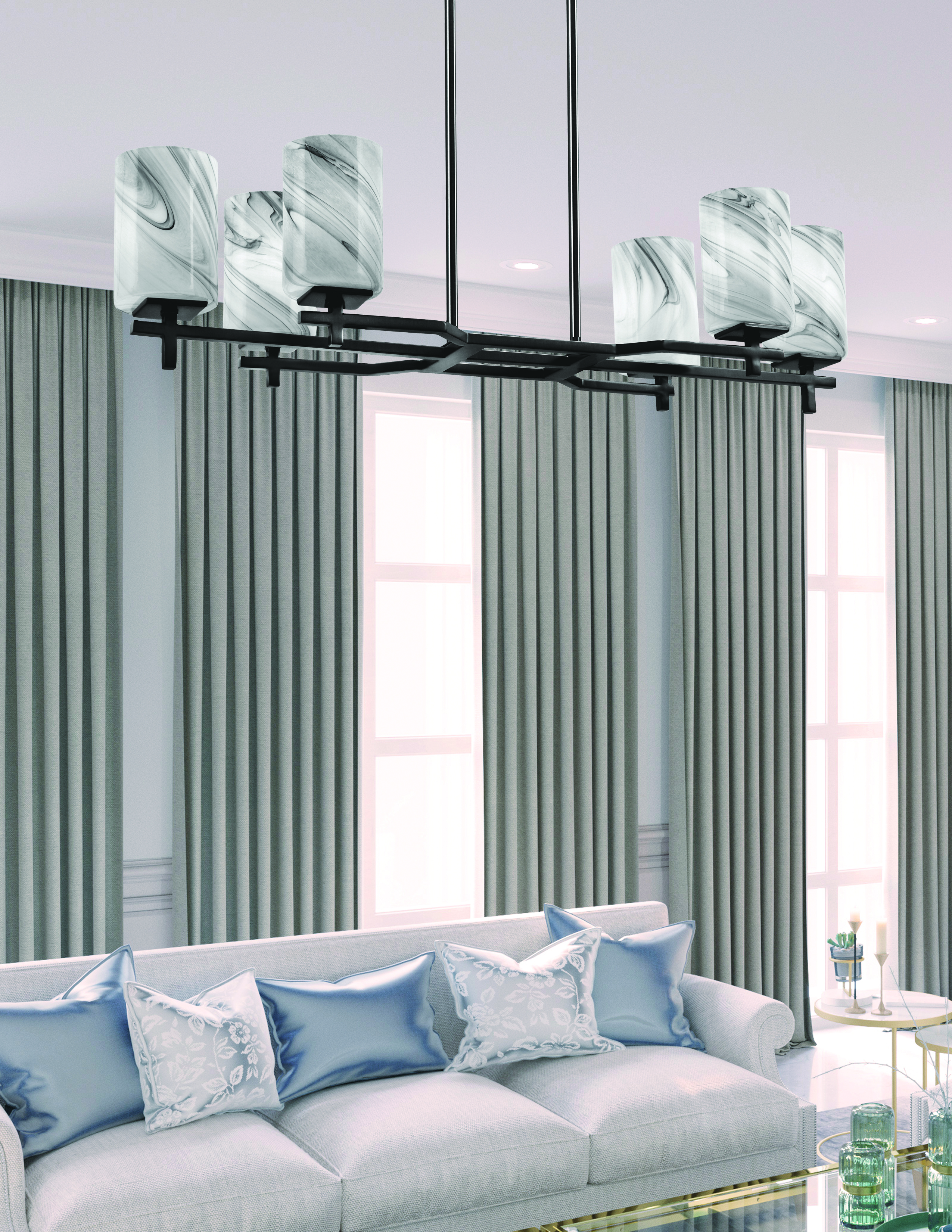 Toltec Lighting 2326-MB-3009 Corbin 6 Light Island Light, Matte Black Finish, 4″ Onyx Swirl Glass