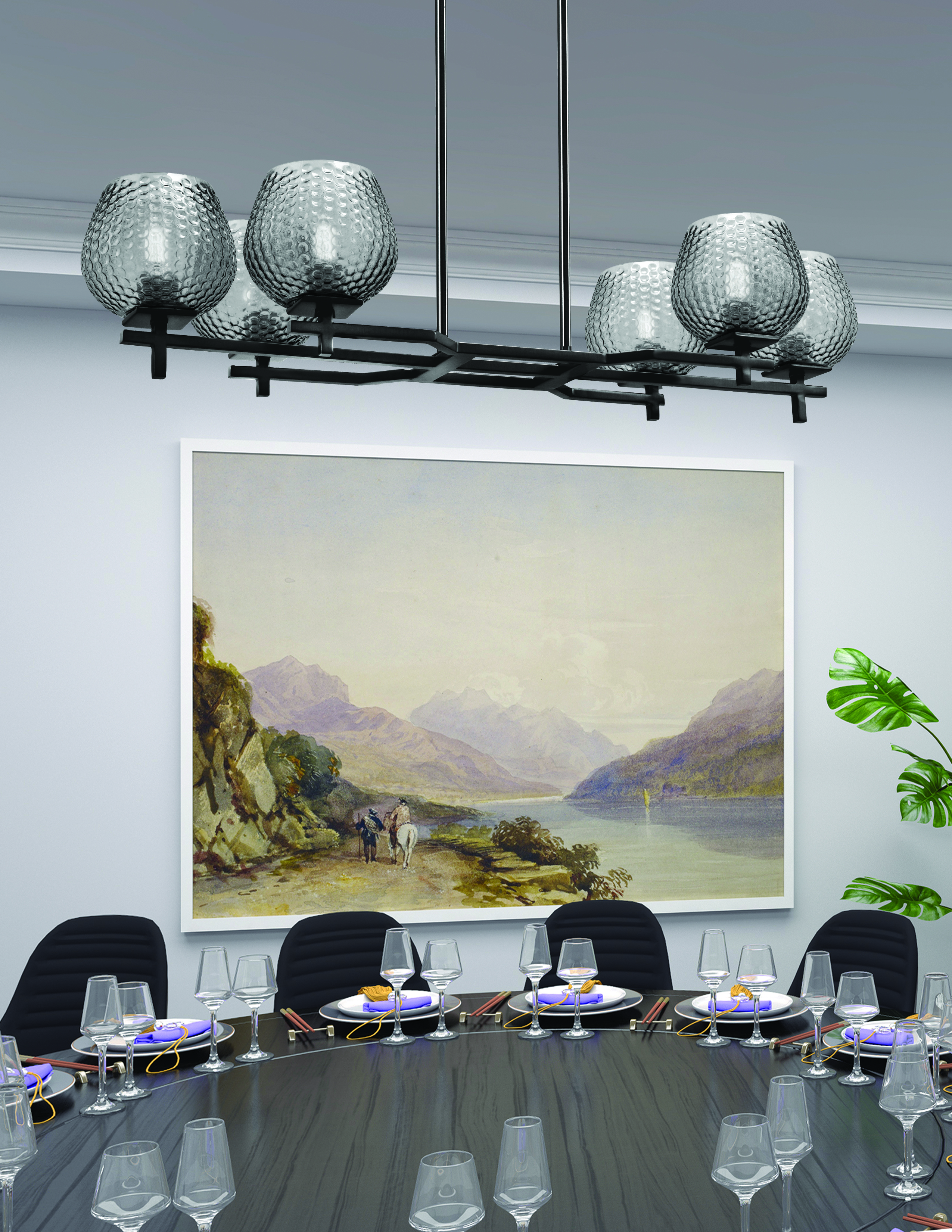 Elevate your space with the bold simplicity of the Corbin 6 Light Island Light in a Matte Black finish by Toltec Lighting. Featuring six distinctive 6″ Smoke Textured Glass shades, this fixture strikes the perfect balance between industrial edge and refined style. The combination of rich matte black and layered glass texture casts a warm, inviting glow—ideal for modern kitchens, dining rooms, or open-concept spaces.