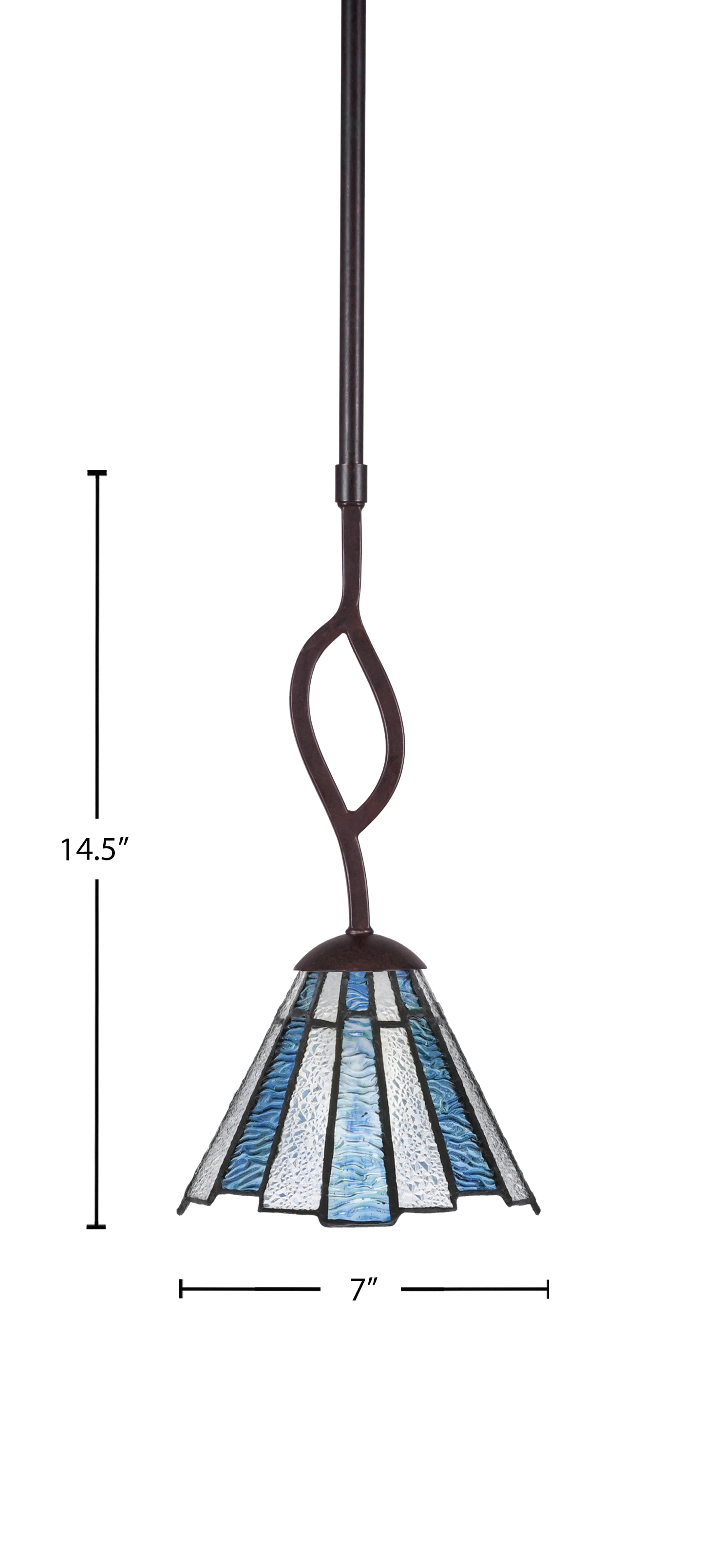 Toltec Lighting 240-DG-9325 Revo Stem Hung Mini Pendant, Dark Granite Finish, 7″ Sea Ice Art Glass
