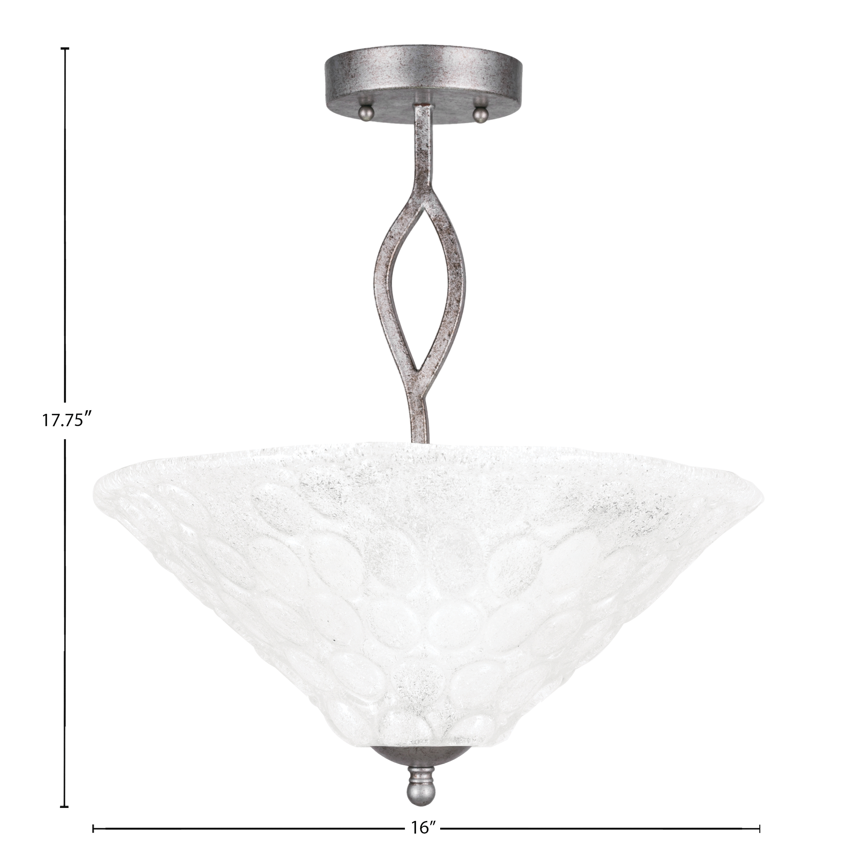 Illuminate Your Space With The Stunning Revo Semi-Flush Ceiling Fixture, Featuring 3-Bulbs That Offer A Warm And Inviting Glow. Its Elegant Aged Silver Finish Adds A Touch Of Sophistication, While The 16″ Italian Bubble Glass Provides A Unique Visual Texture That Captivates The Eye. Perfect For Any Room, This Fixture Blends Modern And Classic Styles Seamlessly, Enhancing Your Home”s Decor.