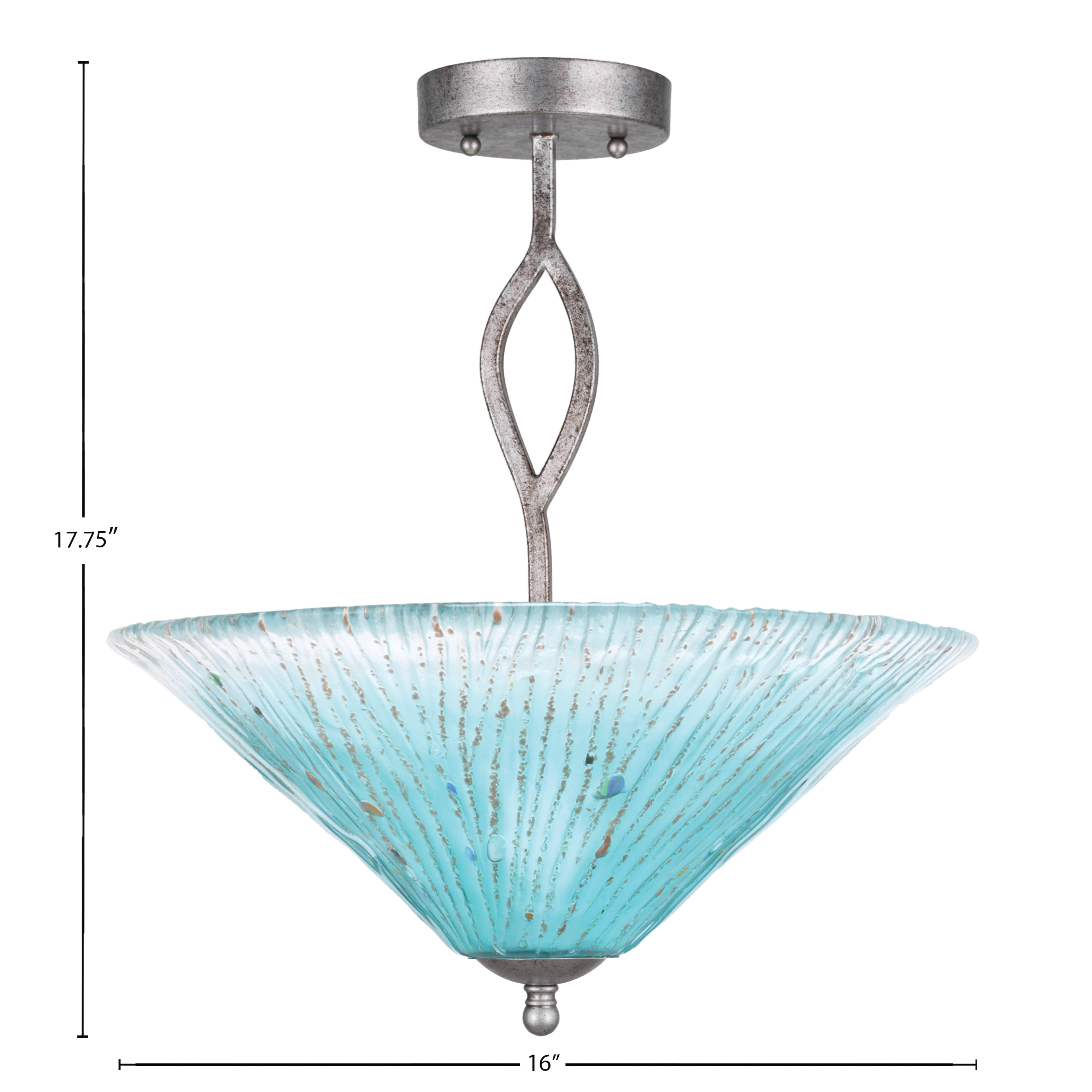 Toltec Lighting 242-AS-715 Revo Semi-Flush, 3-Bulbs, Aged Silver Finish, 16″ Teal Crystal Glass