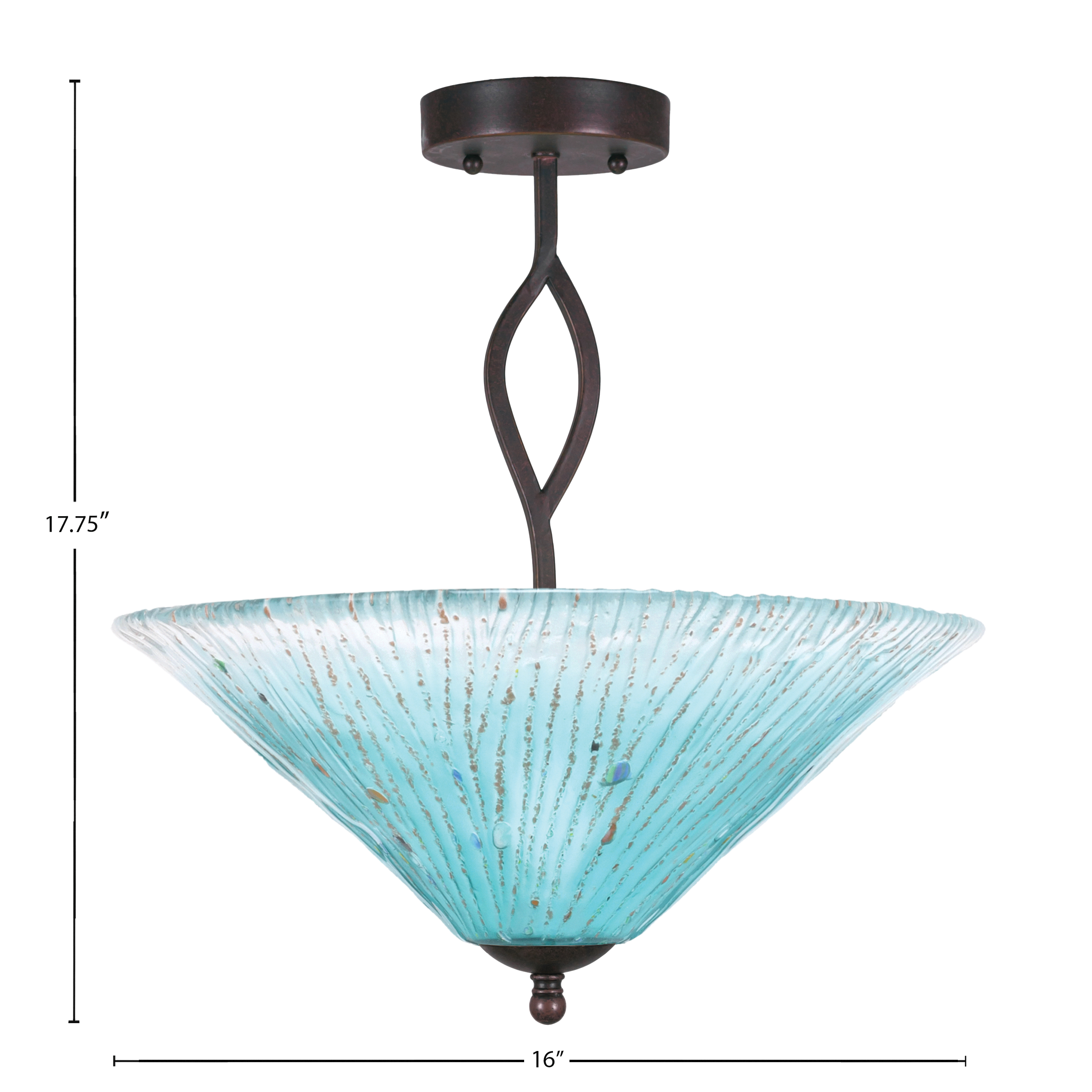 Toltec Lighting 242-DG-715 Revo Semi-Flush, 3-Bulbs, Dark Granite Finish, 16″ Teal Crystal Glass