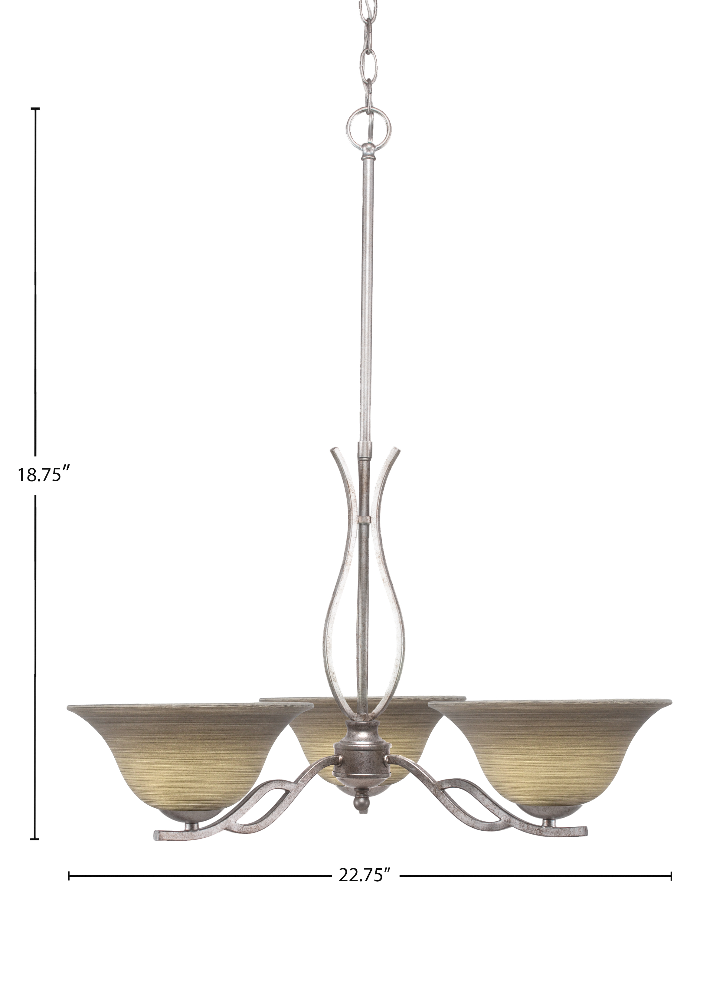 Toltec Lighting 243-AS-603 Revo 3 Light, Uplight, Chandelier, Aged Silver Finish, 10″ Gray Linen Glass