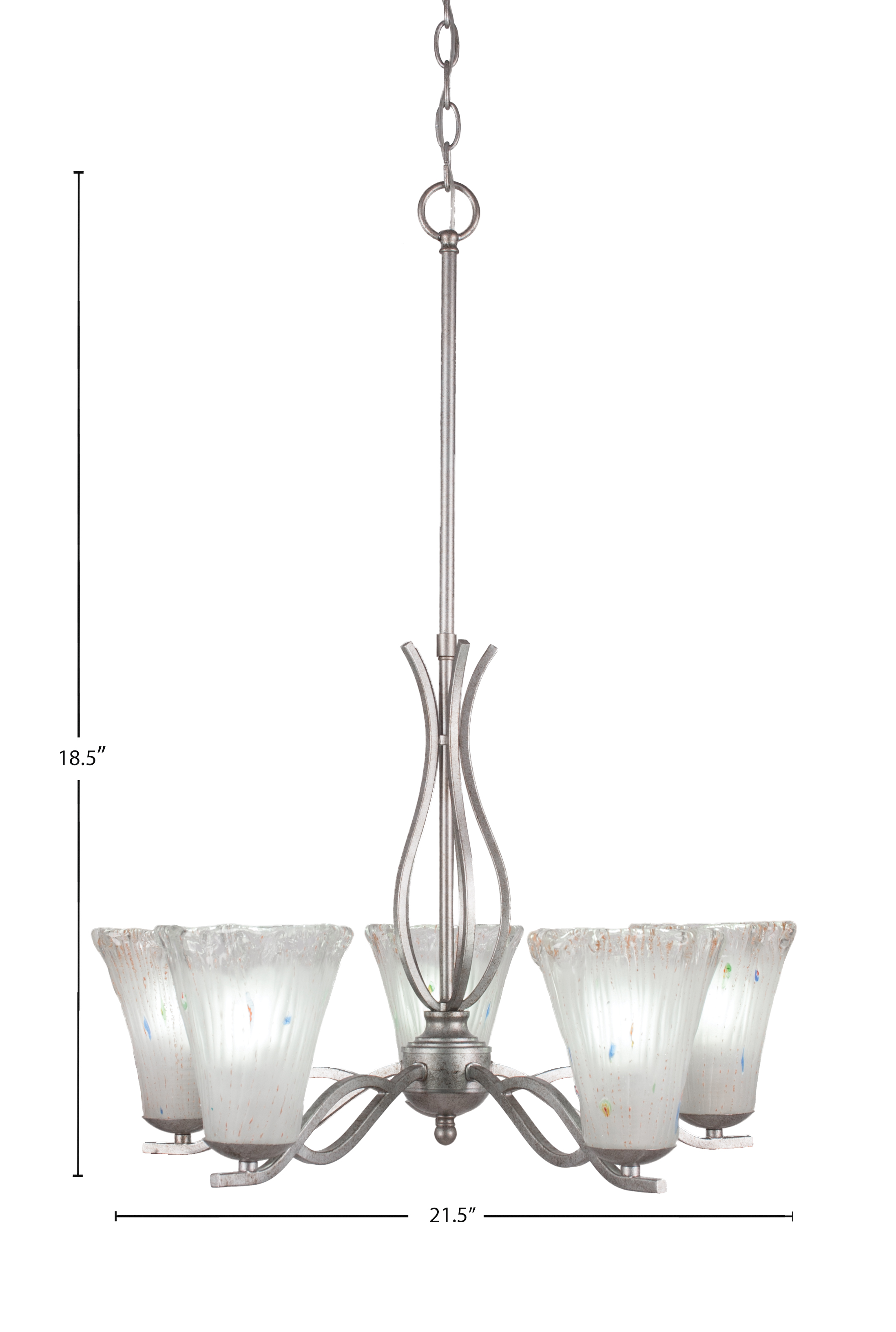 Toltec Lighting 245-AS-721 Revo 5 Light, Uplight, Chandelier, Aged Silver Finish, 5.5″ Fluted Frosted Crystal Glass