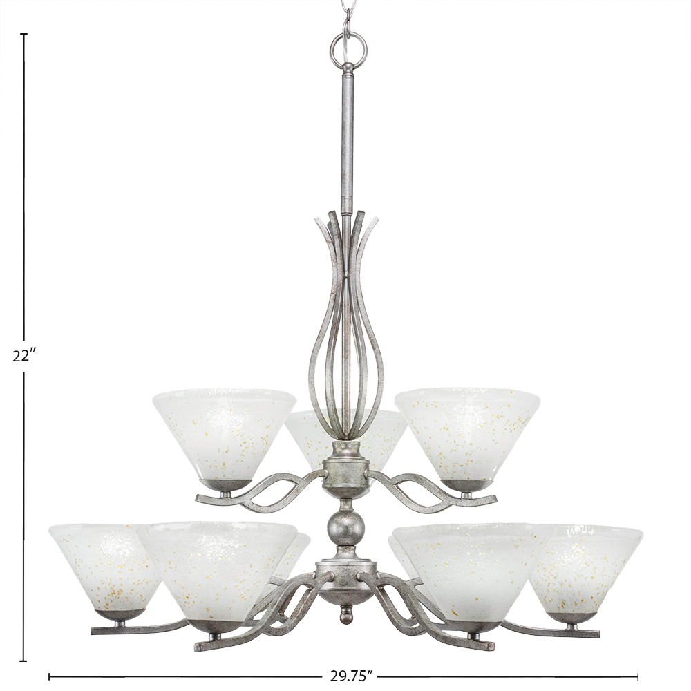 Toltec Lighting 249-AS-7145 Revo 9 Light, Uplight, Chandelier, Aged Silver Finish, 7″ Gold Ice Glass