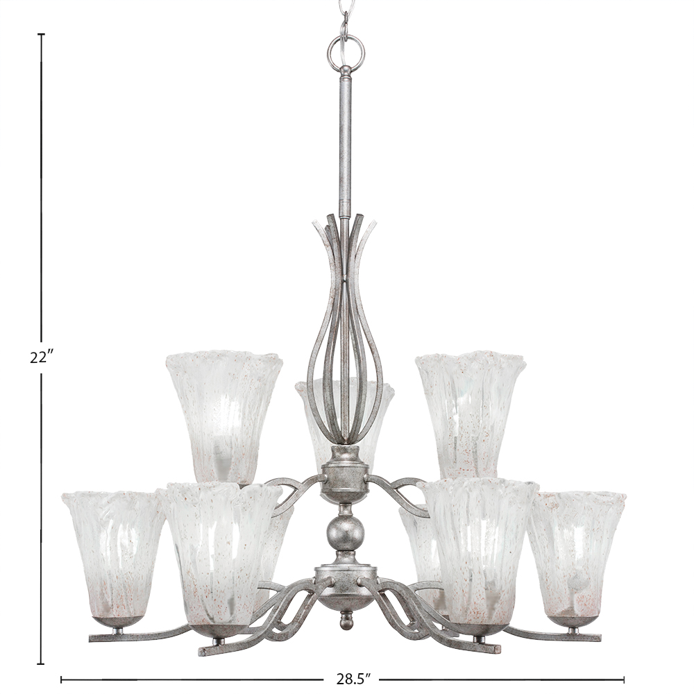 Toltec Lighting 249-AS-729 Revo 9 Light, Uplight, Chandelier, Aged Silver Finish, 5.5″ Fluted Italian Ice Glass