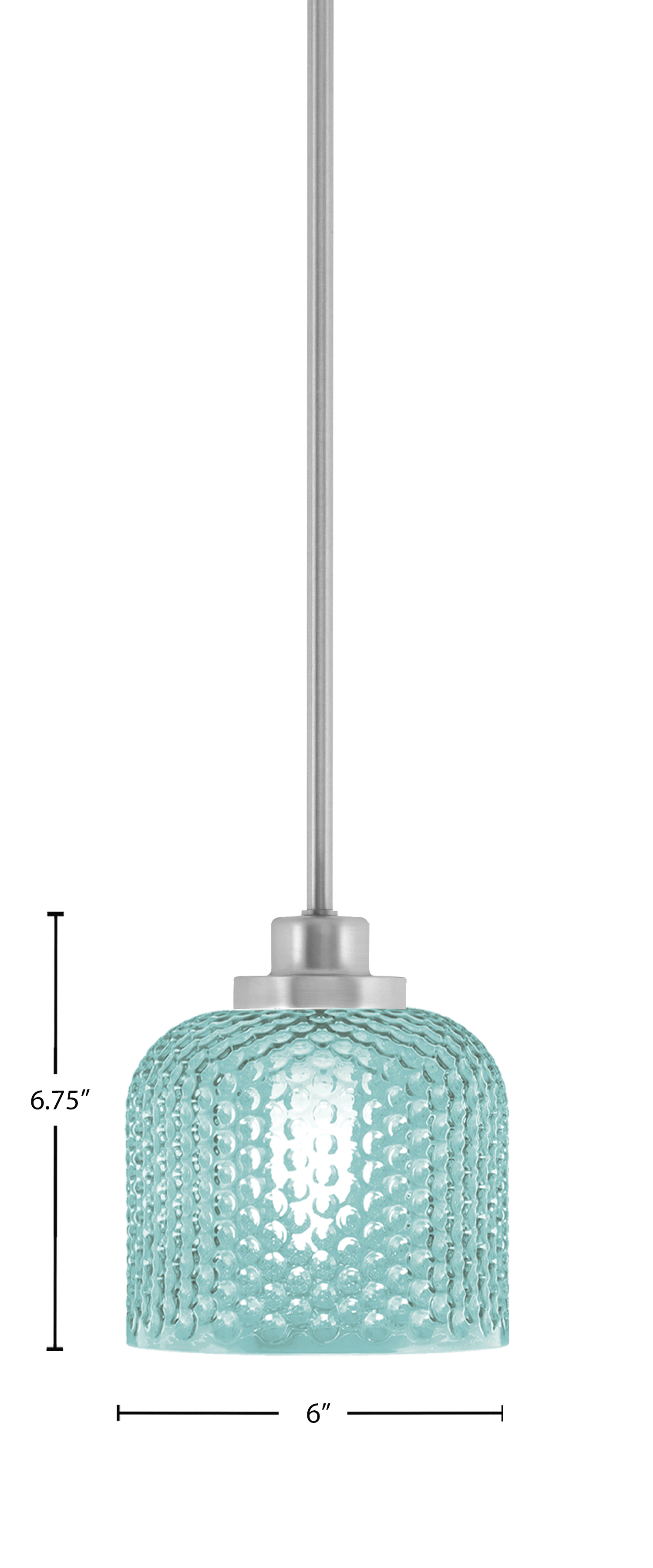 Toltec Lighting 2601-BN-4615 Odyssey Stem Hung Mini Pendant, Brushed Nickel Finish, 6″ Turquoise Textured Glass