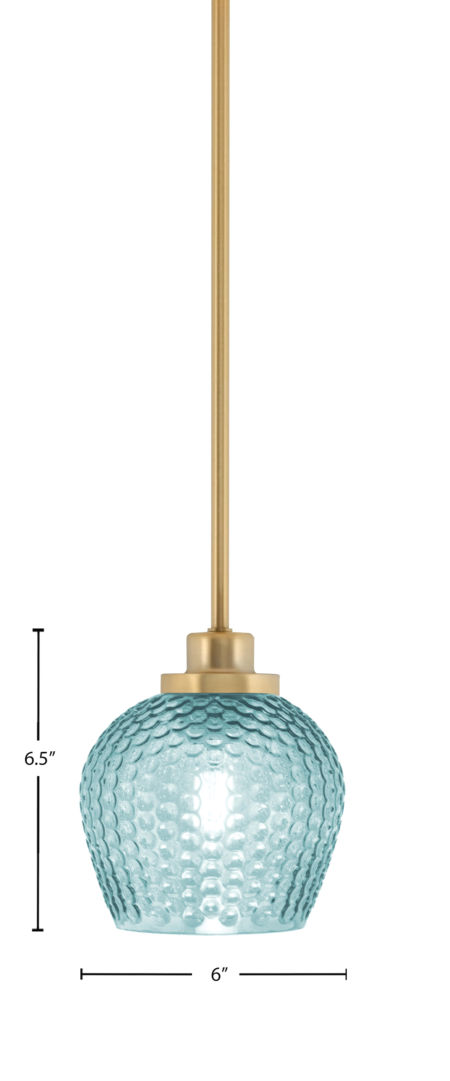 Toltec Lighting 2601-NAB-4605 Odyssey Stem Hung Mini Pendant, New Age Brass Finish, 6″ Turquoise Textured Glass