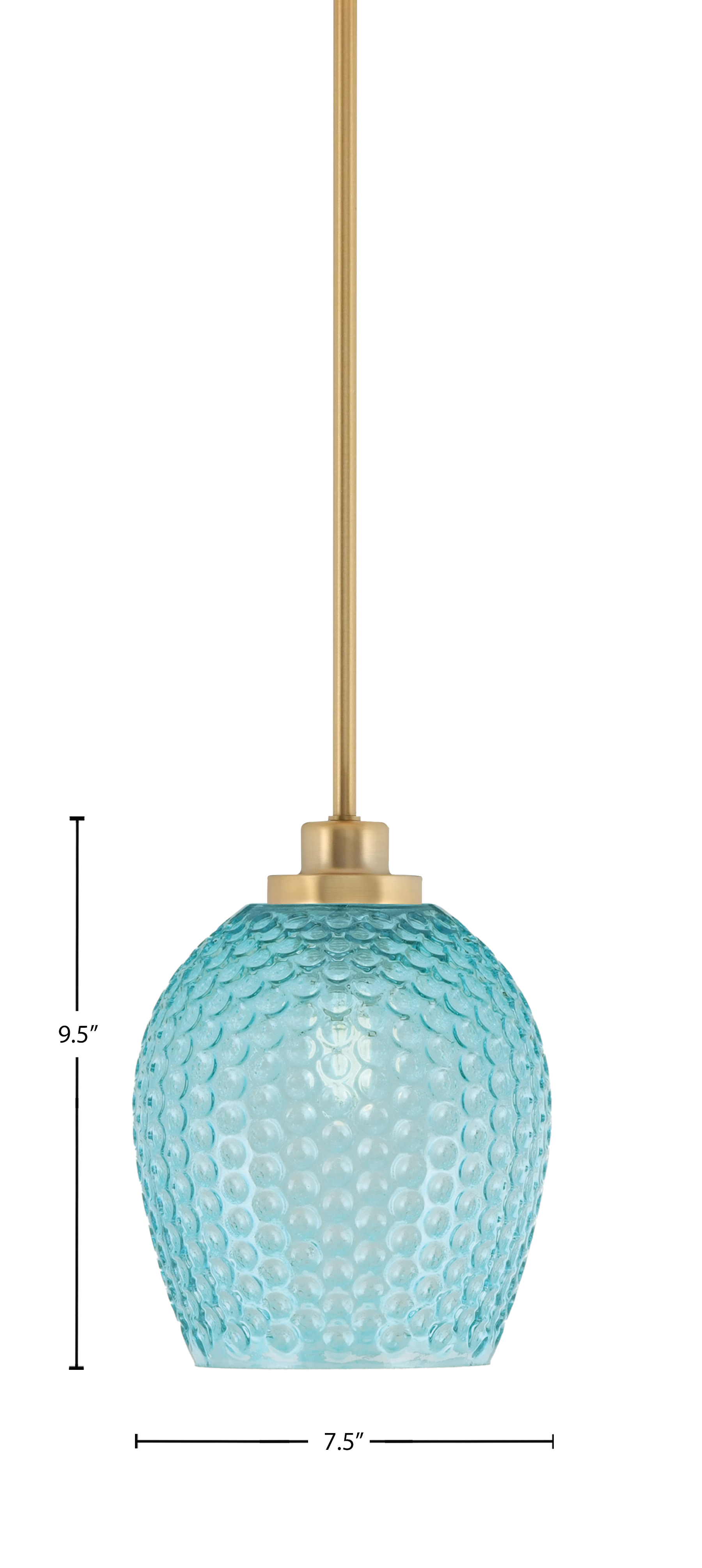 Toltec Lighting 2601-NAB-4905 Odyssey Stem Hung Mini Pendant, New Age Brass Finish, 7.5″ Turquoise Textured Glass