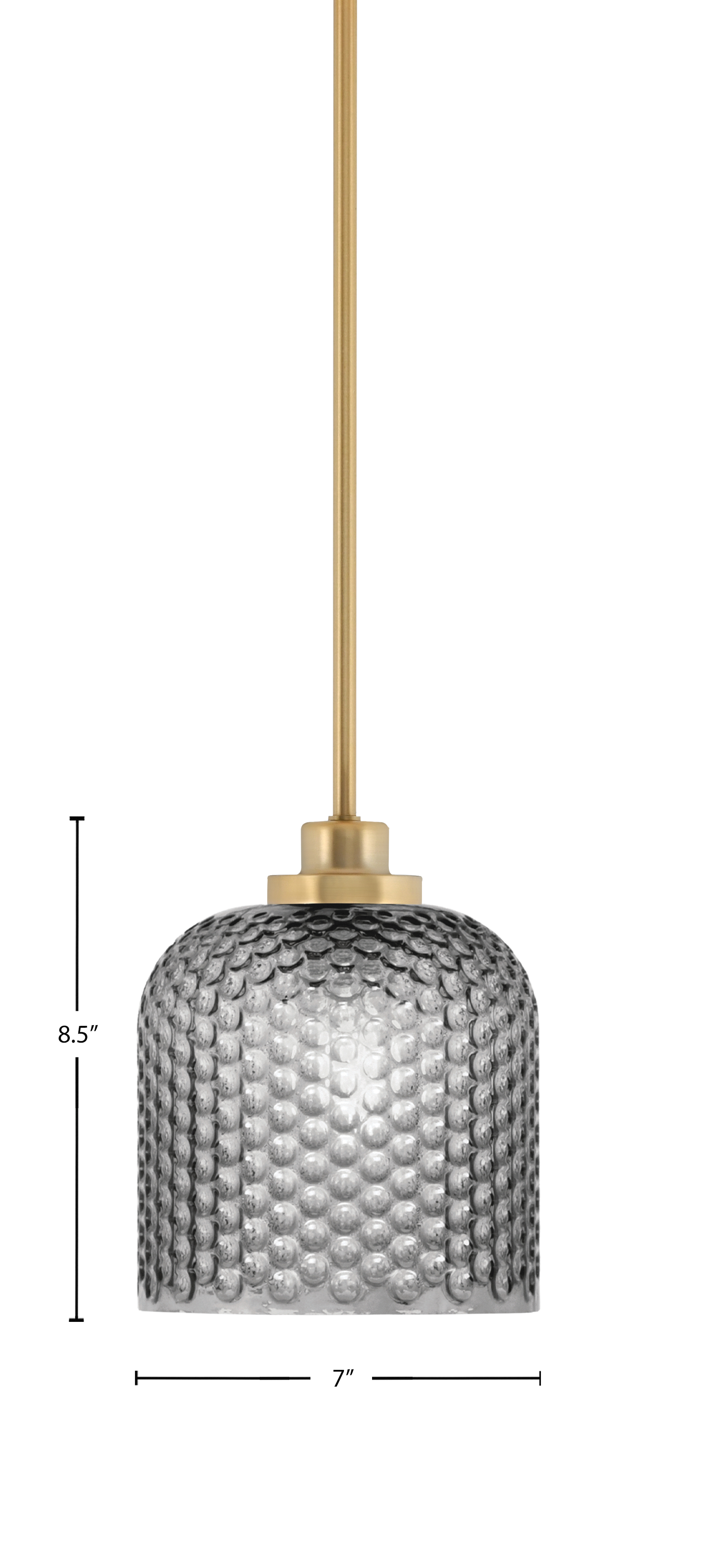 Toltec Lighting 2601-NAB-4912 Odyssey Stem Hung Mini Pendant, New Age Brass Finish, 7″ Smoke Textured Glass