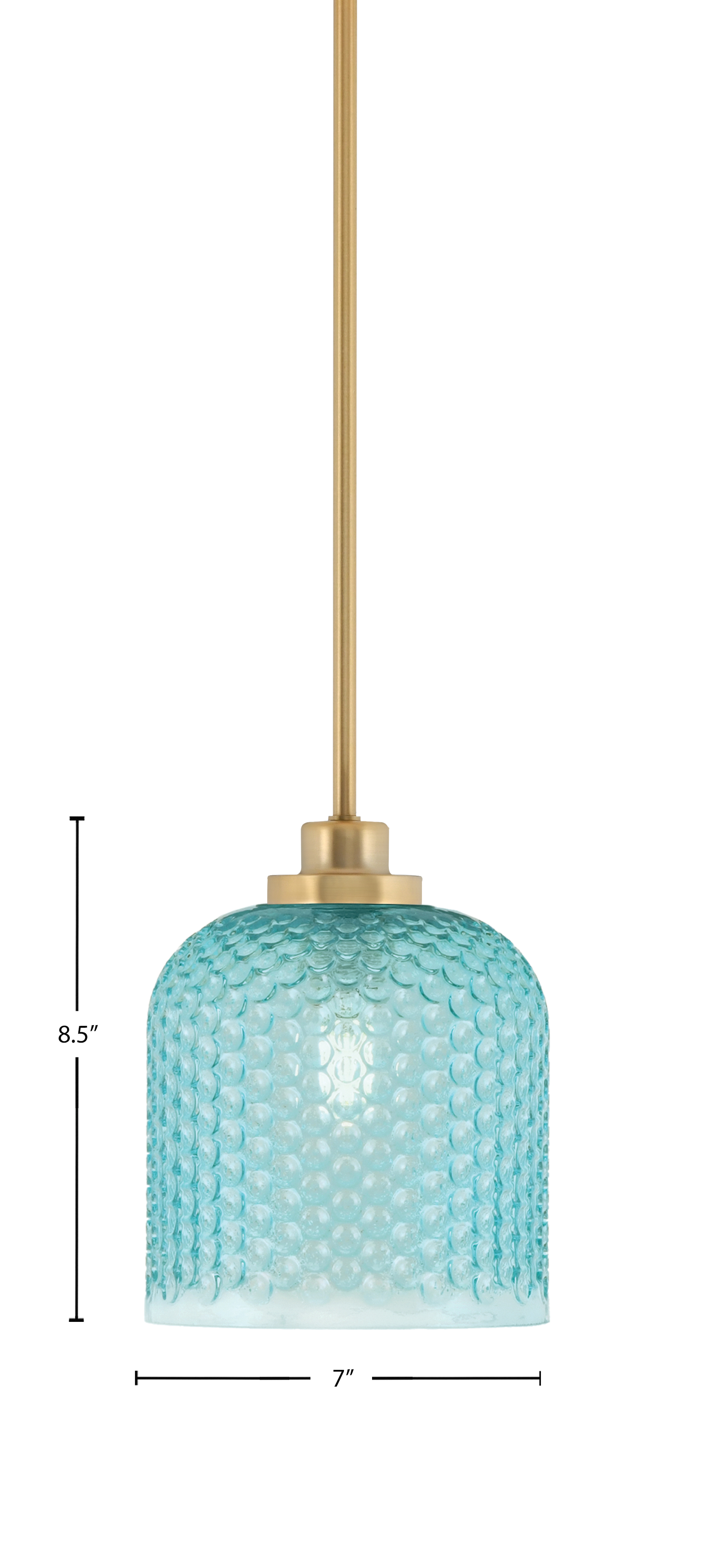 Toltec Lighting 2601-NAB-4915 Odyssey Stem Hung Mini Pendant, New Age Brass Finish, 7″ Turquoise Textured Glass