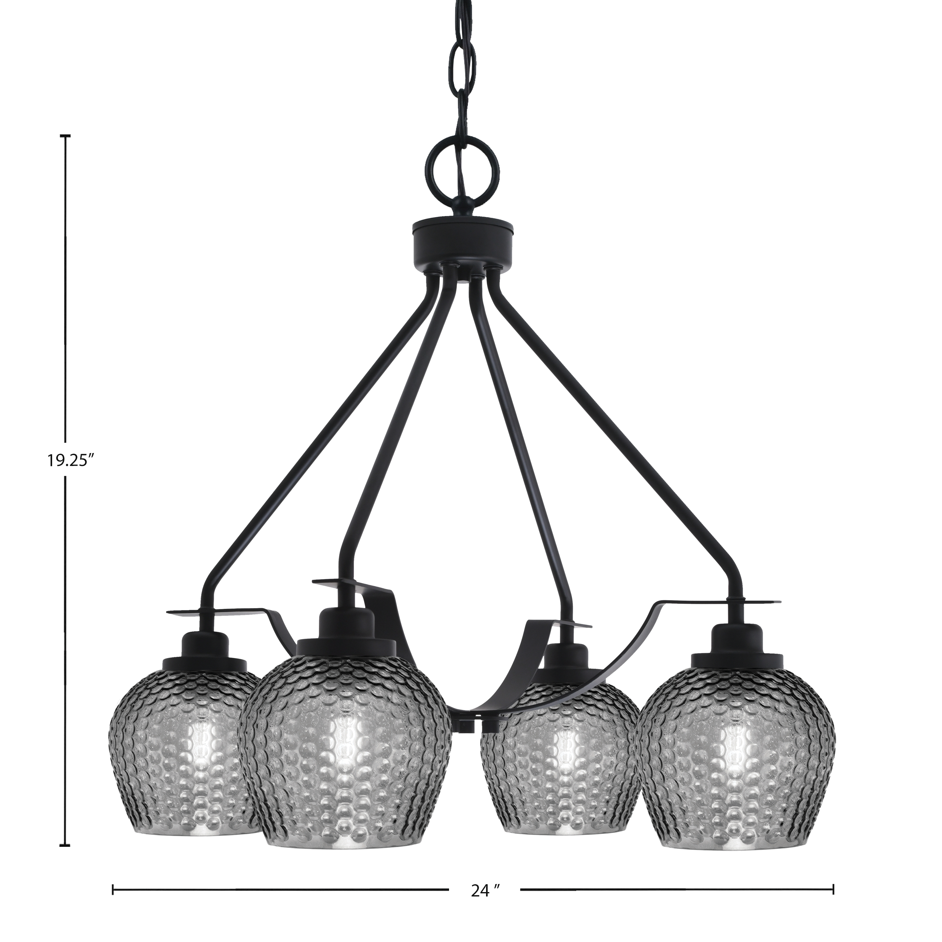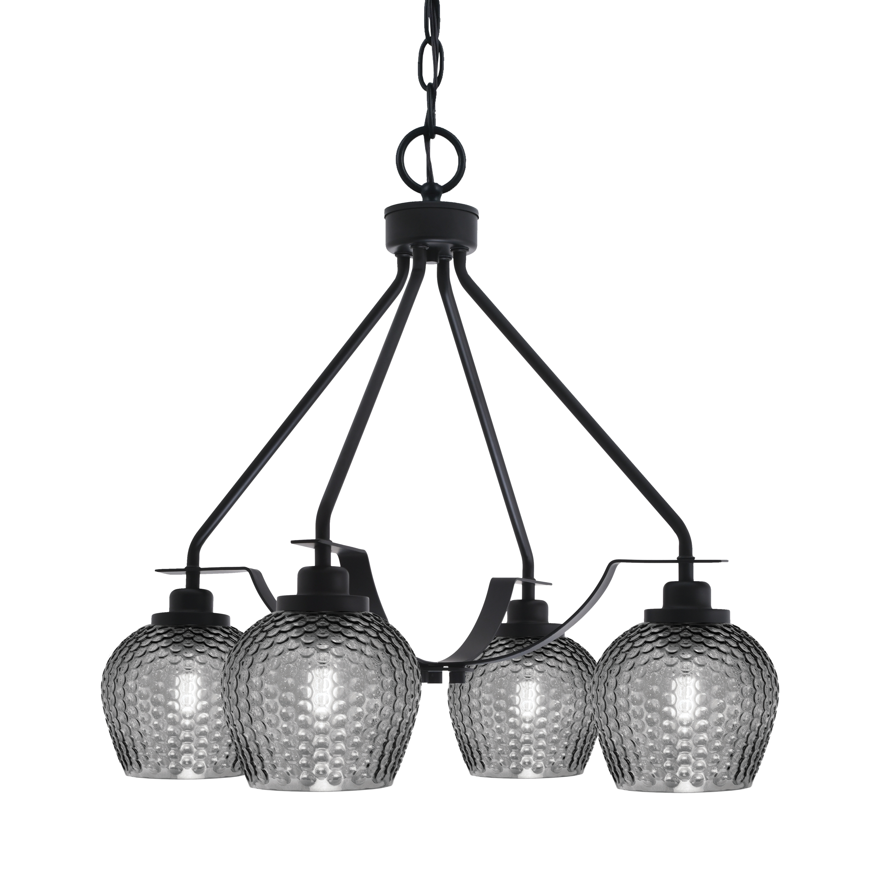 Toltec Lighting 2604-MB-4602 Odyssey 4 Light Chandelier, Matte Black Finish, 6″ Smoke Textured Glass