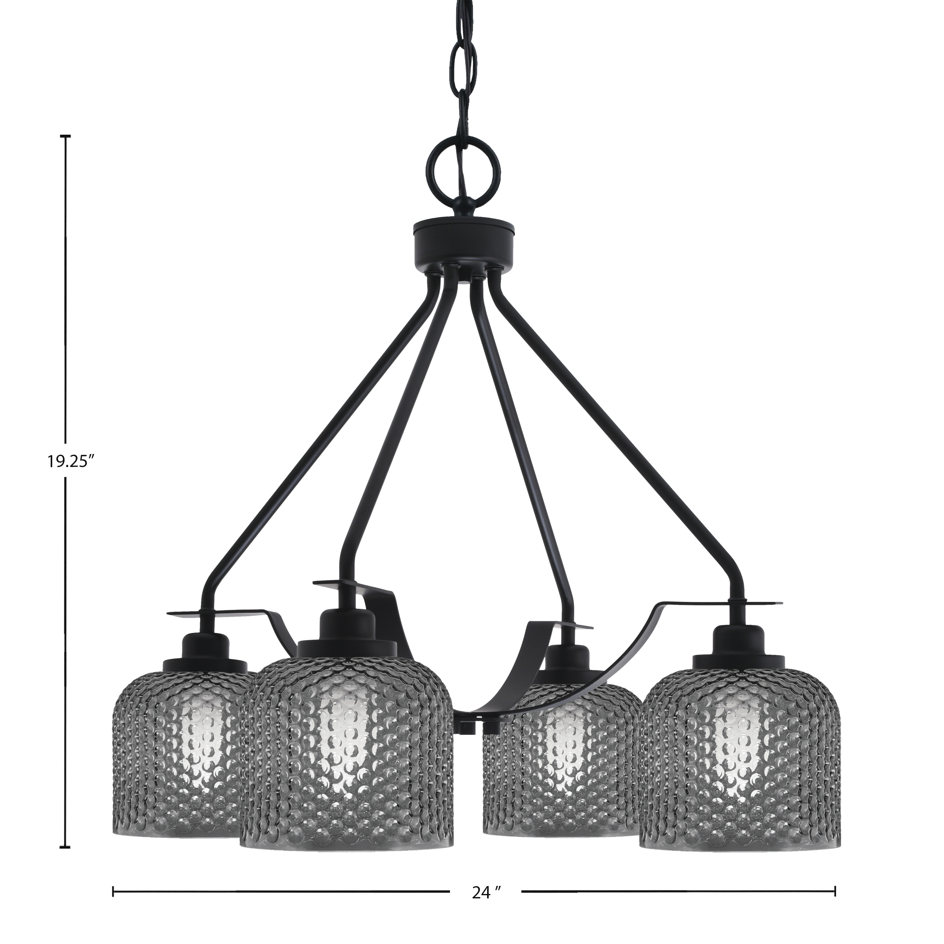 Toltec Lighting 2604-MB-4612 Odyssey 4 Light Chandelier, Matte Black Finish, 6″ Smoke Textured Glass