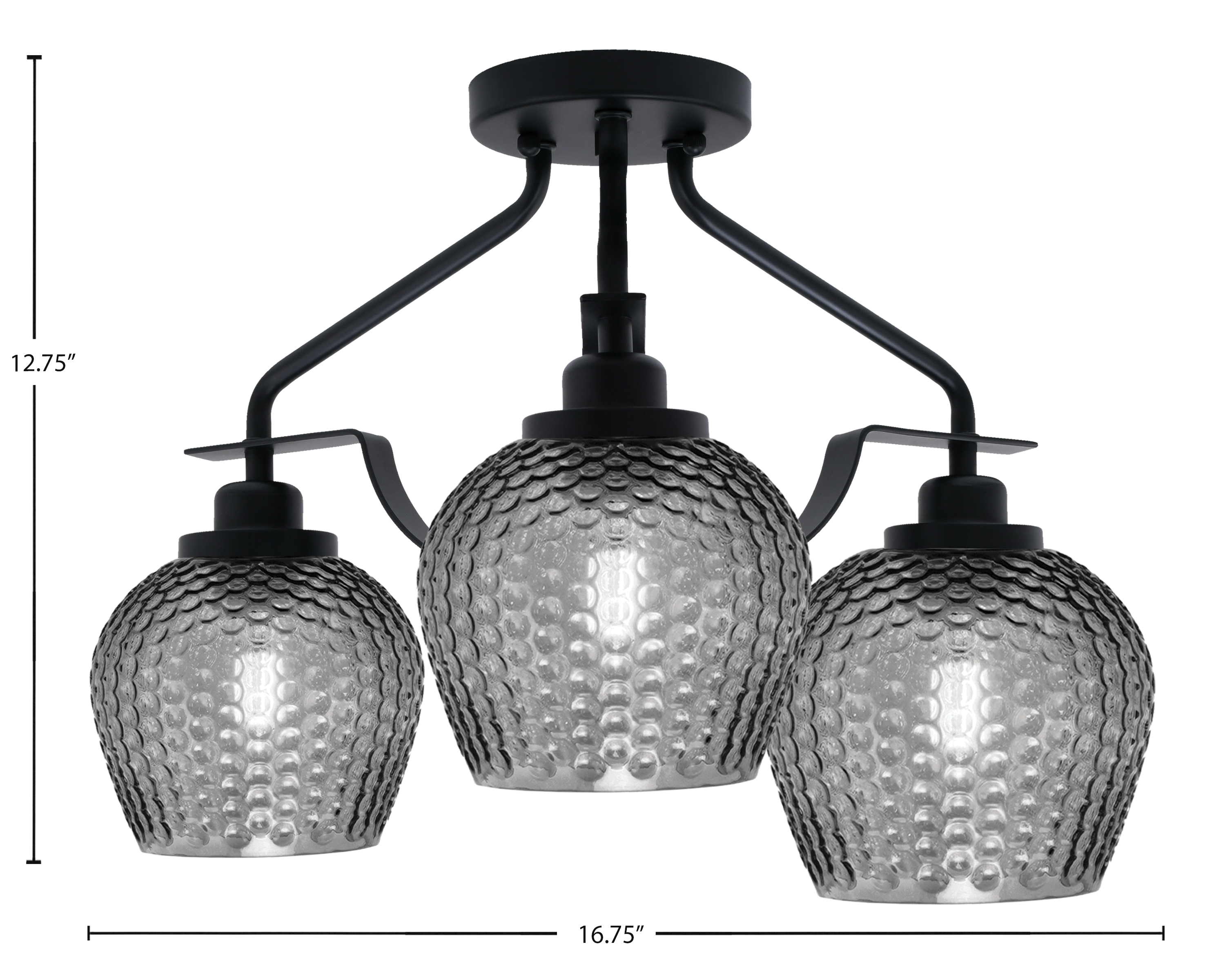 Toltec Lighting 2607-MB-4602 Odyssey 3 Light Semi-Flush, Matte Black Finish, 6″ Smoke Textured Glass