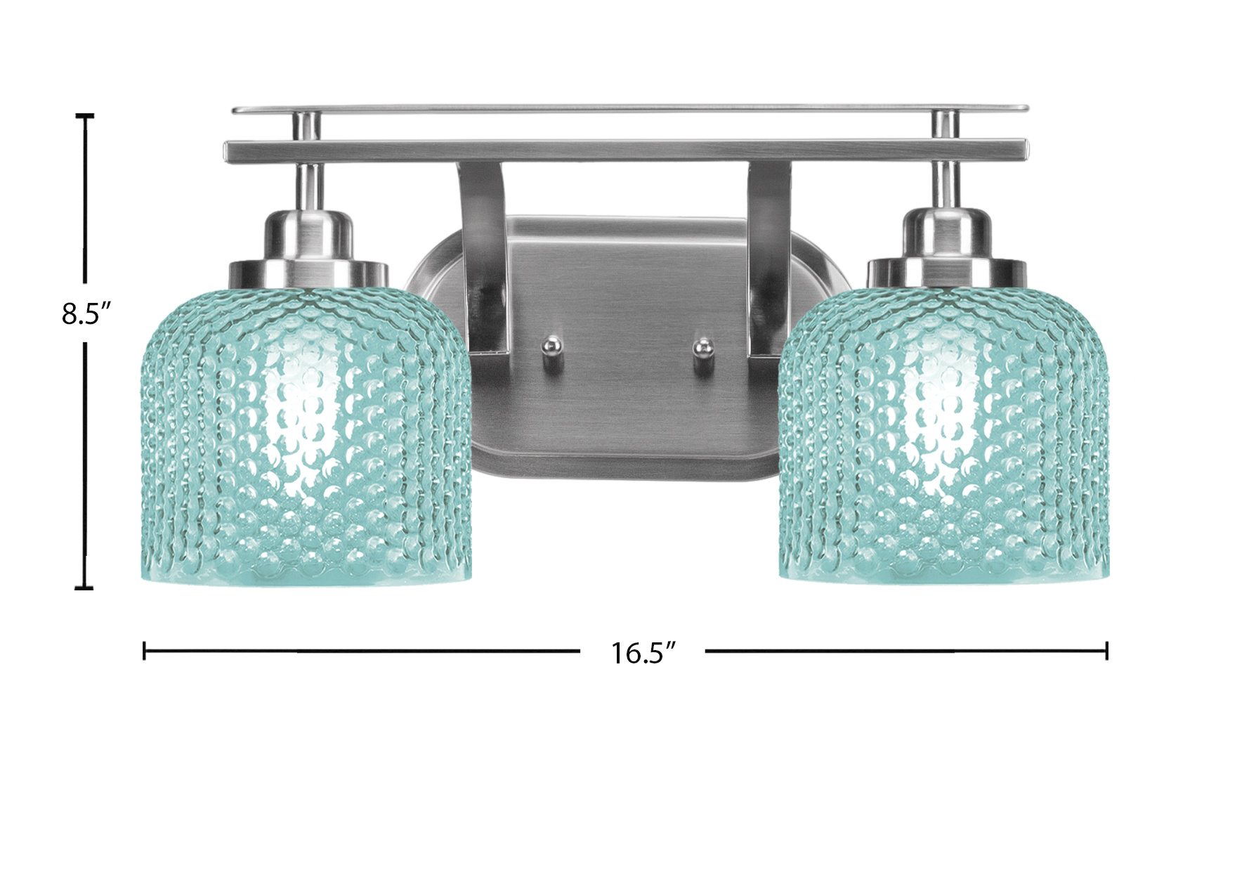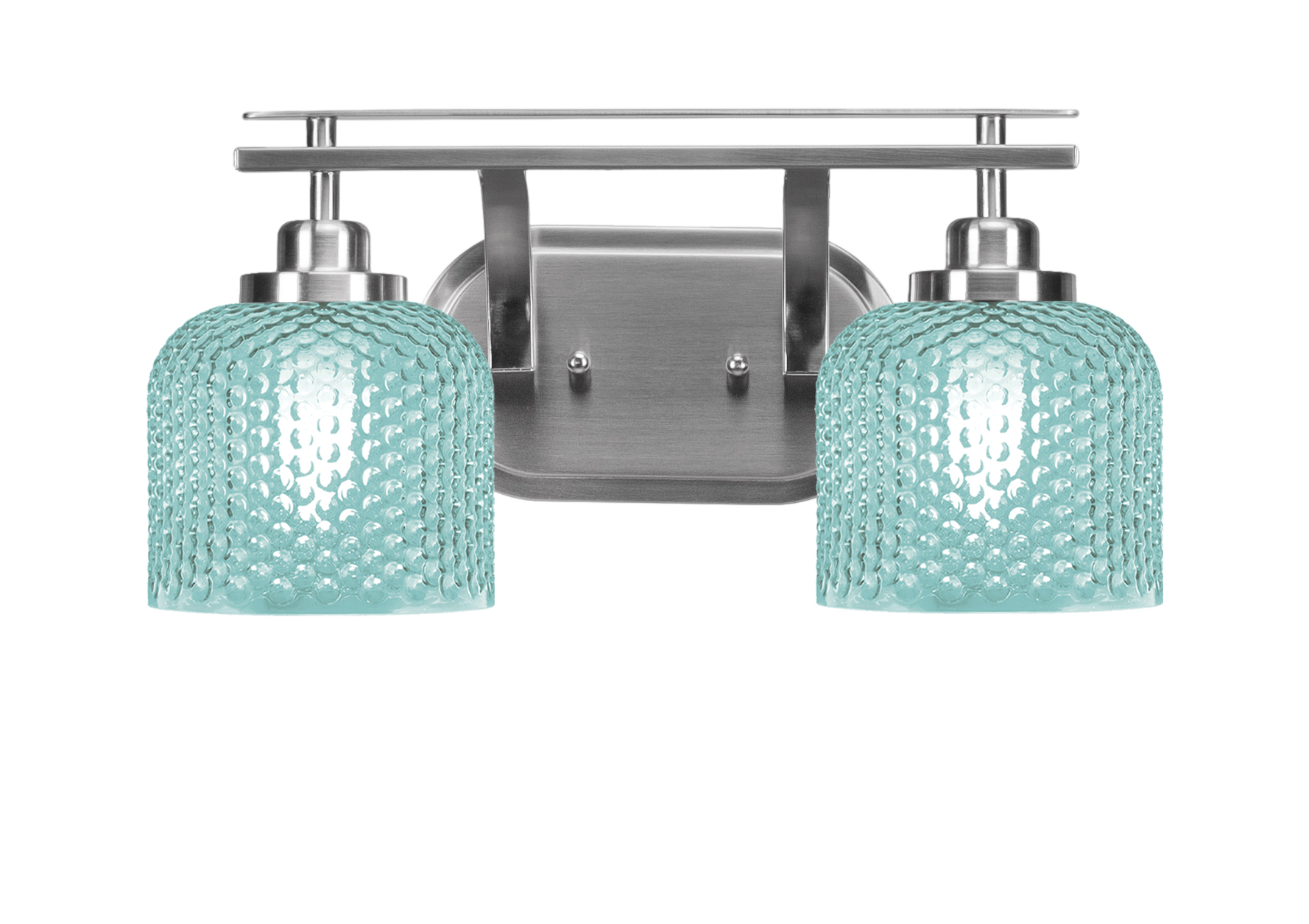 Toltec Lighting 2612-BN-4615 Odyssey 2 Light Bath Bar, Brushed Nickel Finish, 6″ Turquoise Textured Glass