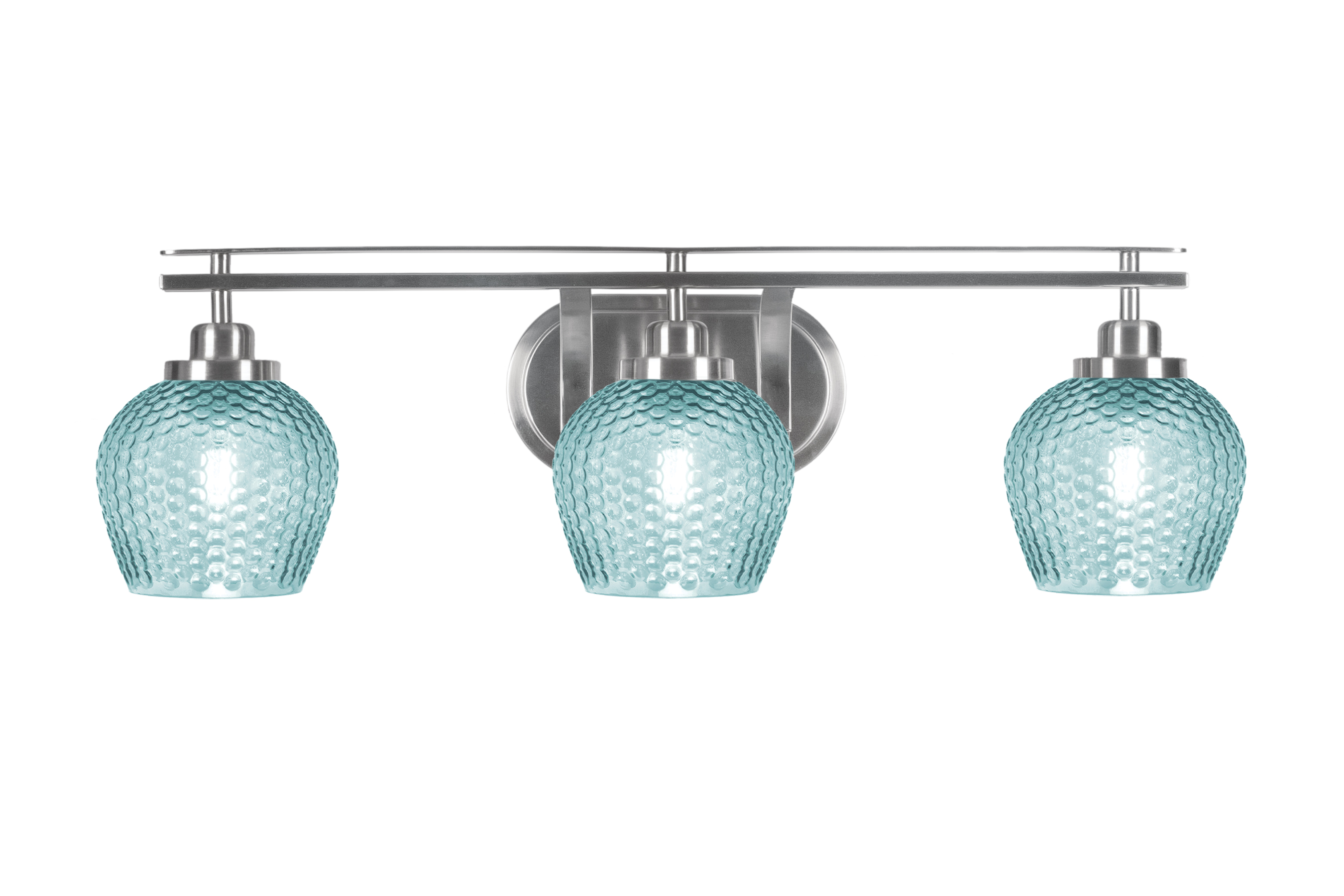 Toltec Lighting 2613-BN-4605 Odyssey 3 Light Bath Bar, Brushed Nickel Finish, 6″ Turquoise Textured Glass