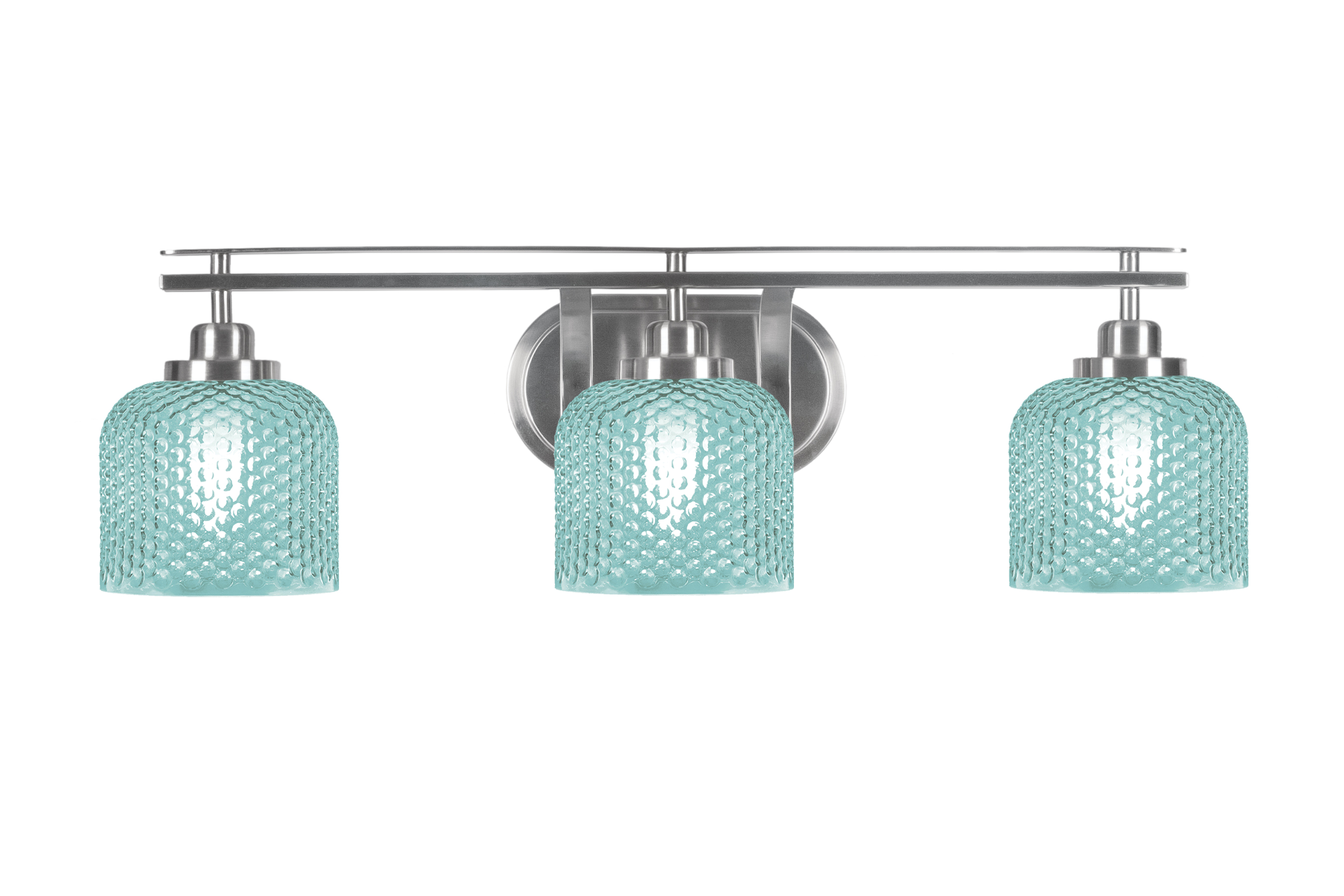 Toltec Lighting 2613-BN-4615 Odyssey 3 Light Bath Bar, Brushed Nickel Finish, 6″ Turquoise Textured Glass