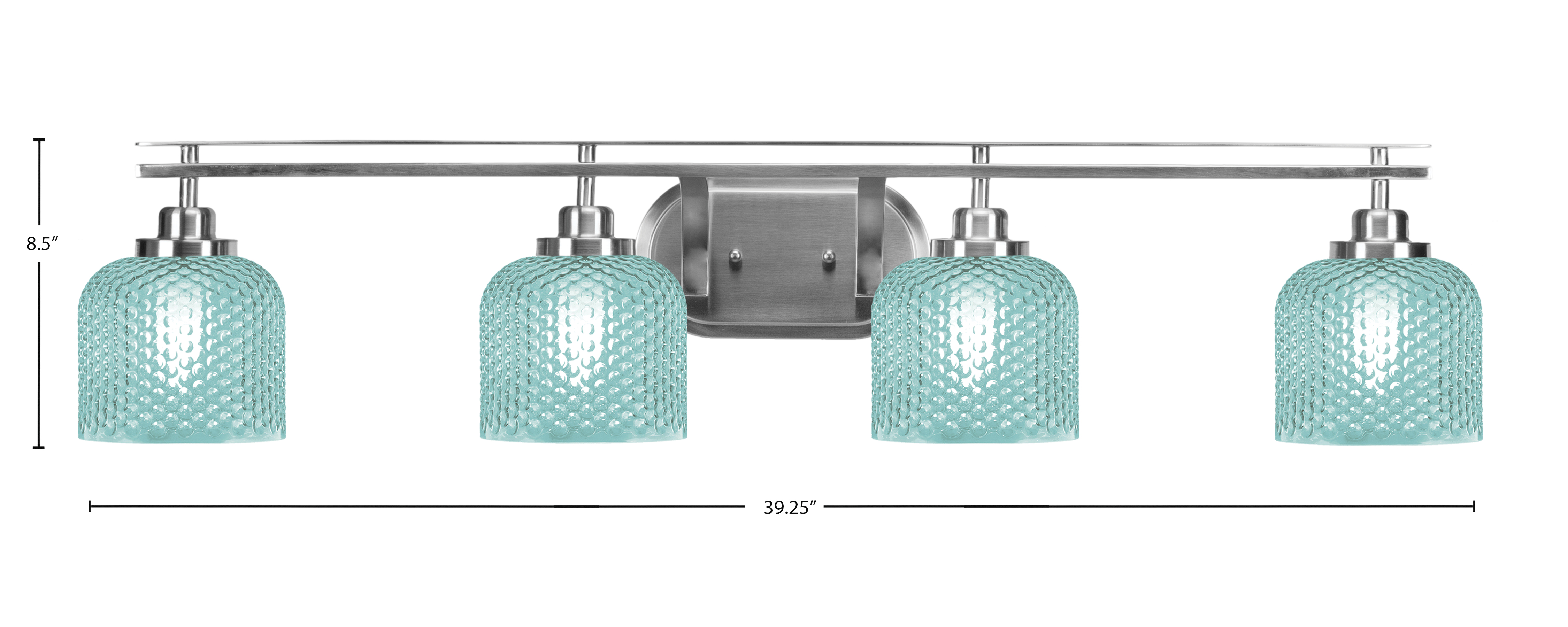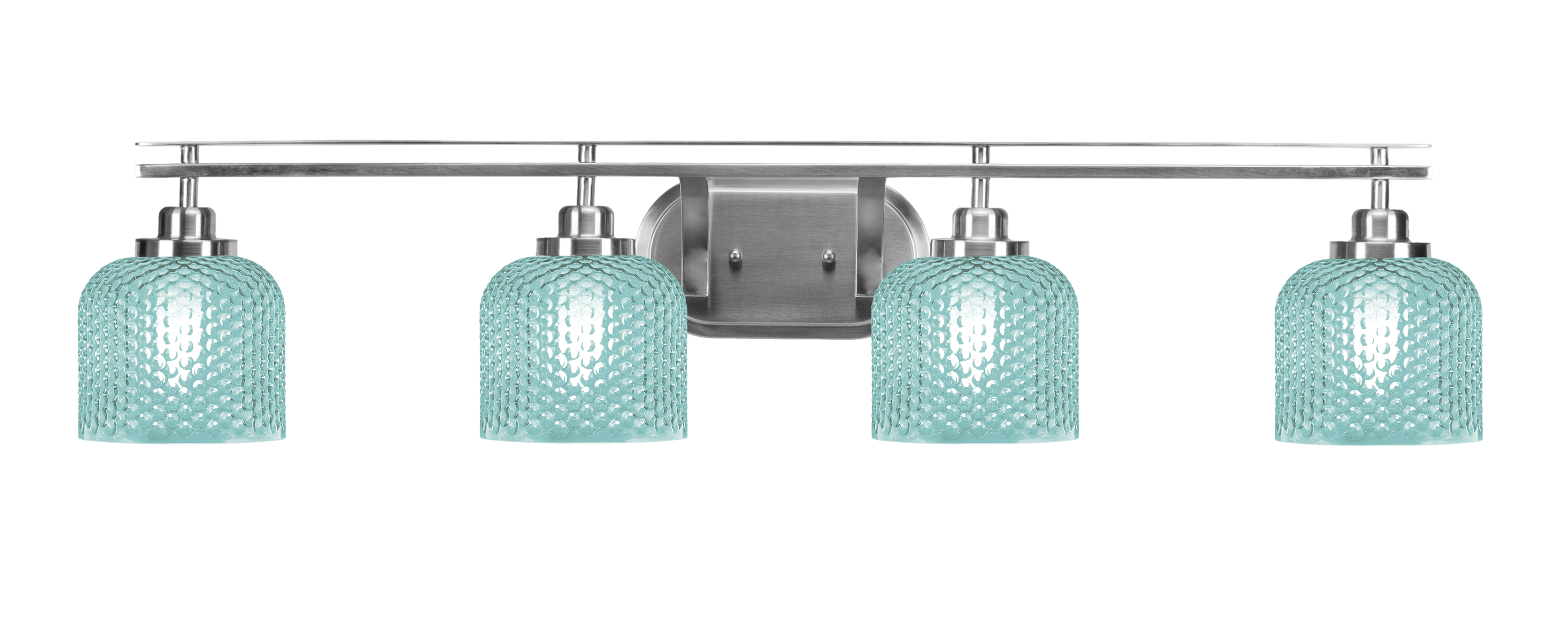 Toltec Lighting 2614-BN-4615 Odyssey 4 Light Bath Bar, Brushed Nickel Finish, 6″ Turquoise Textured Glass