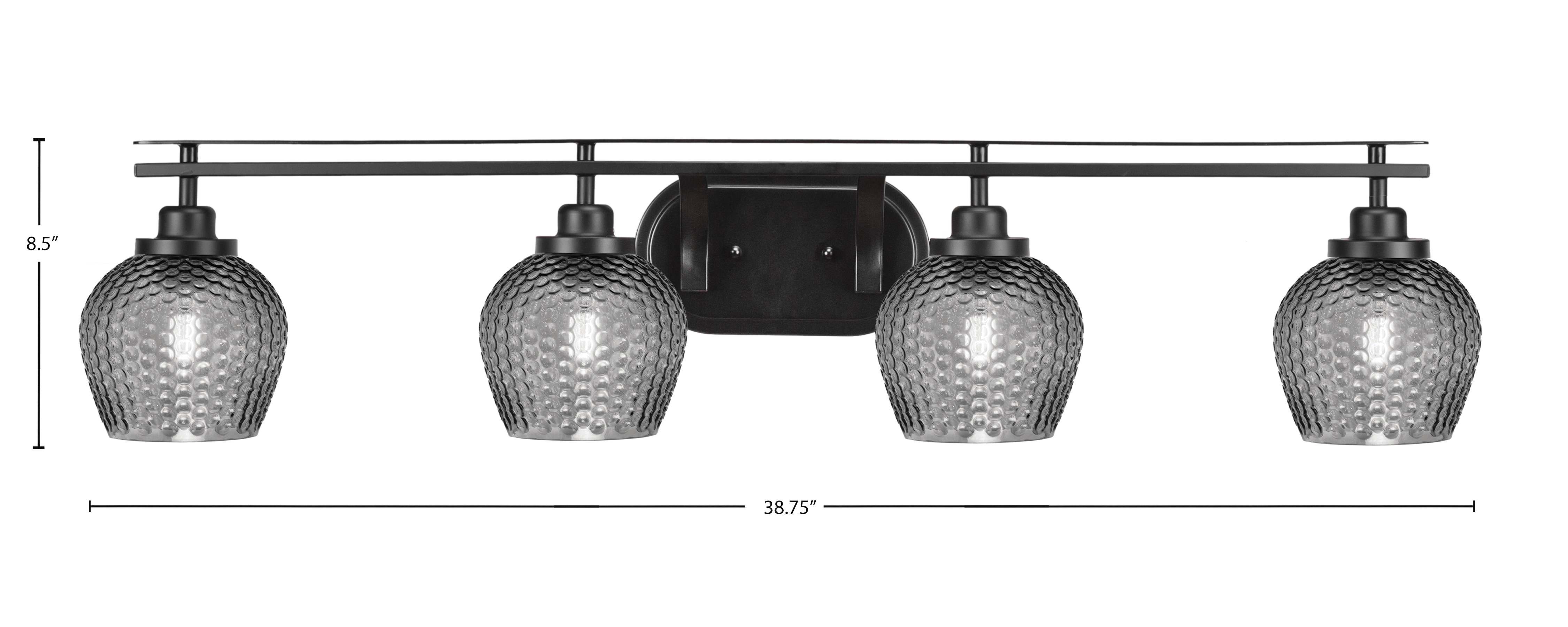 Toltec Lighting 2614-MB-4602 Odyssey 4 Light Bath Bar, Matte Black Finish, 6″ Smoke Textured Glass