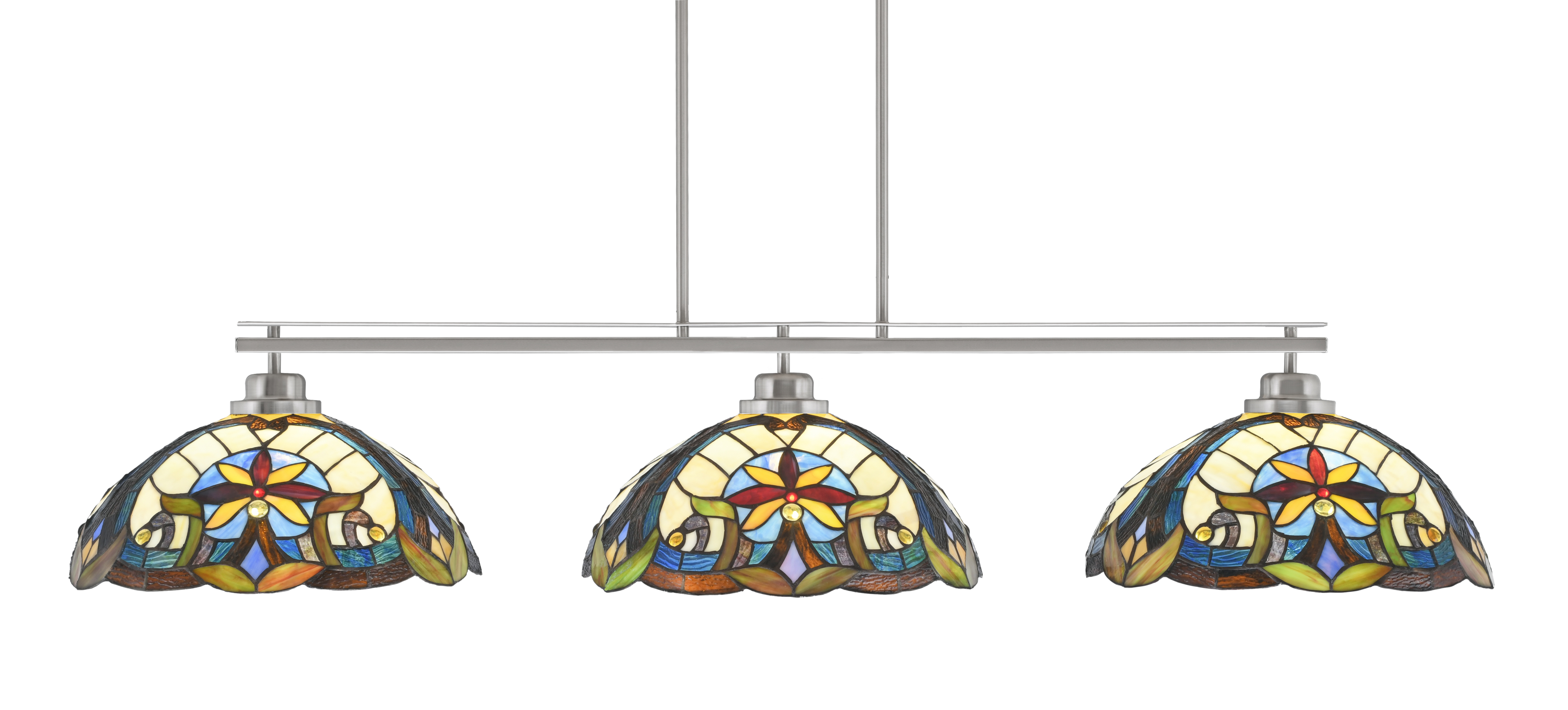 Toltec Lighting 2633-BN-936 Odyssey 3 Light Bar, Round Fitter, Brushed Nickel Finish, 16″ Earth Star Art Glass