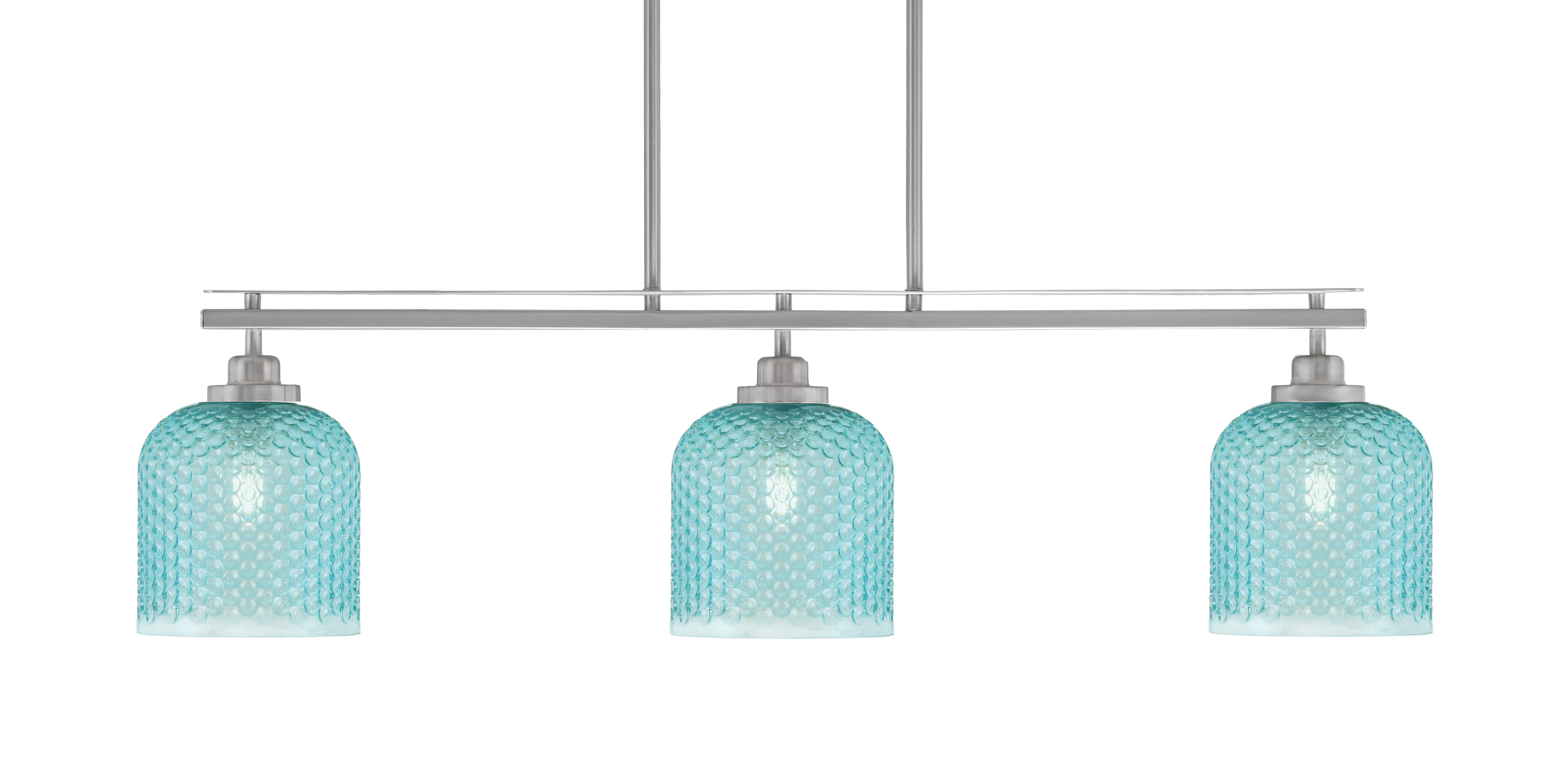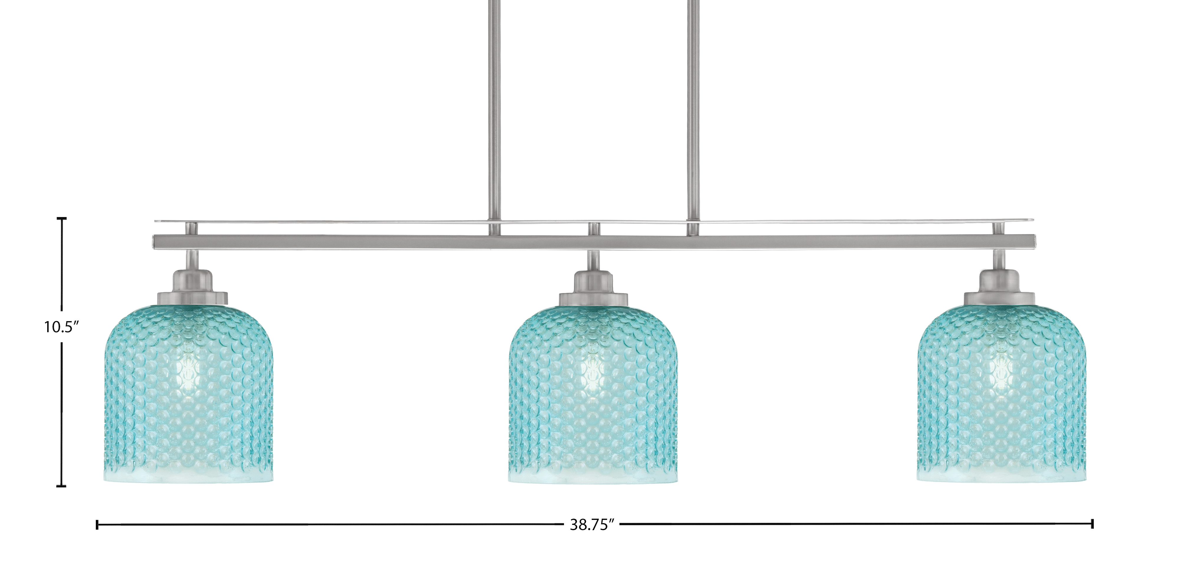 Toltec Lighting 2636-BN-4915 Odyssey 3 Light Island Light, Brushed Nickel Finish, 7″ Turquoise Textured Glass