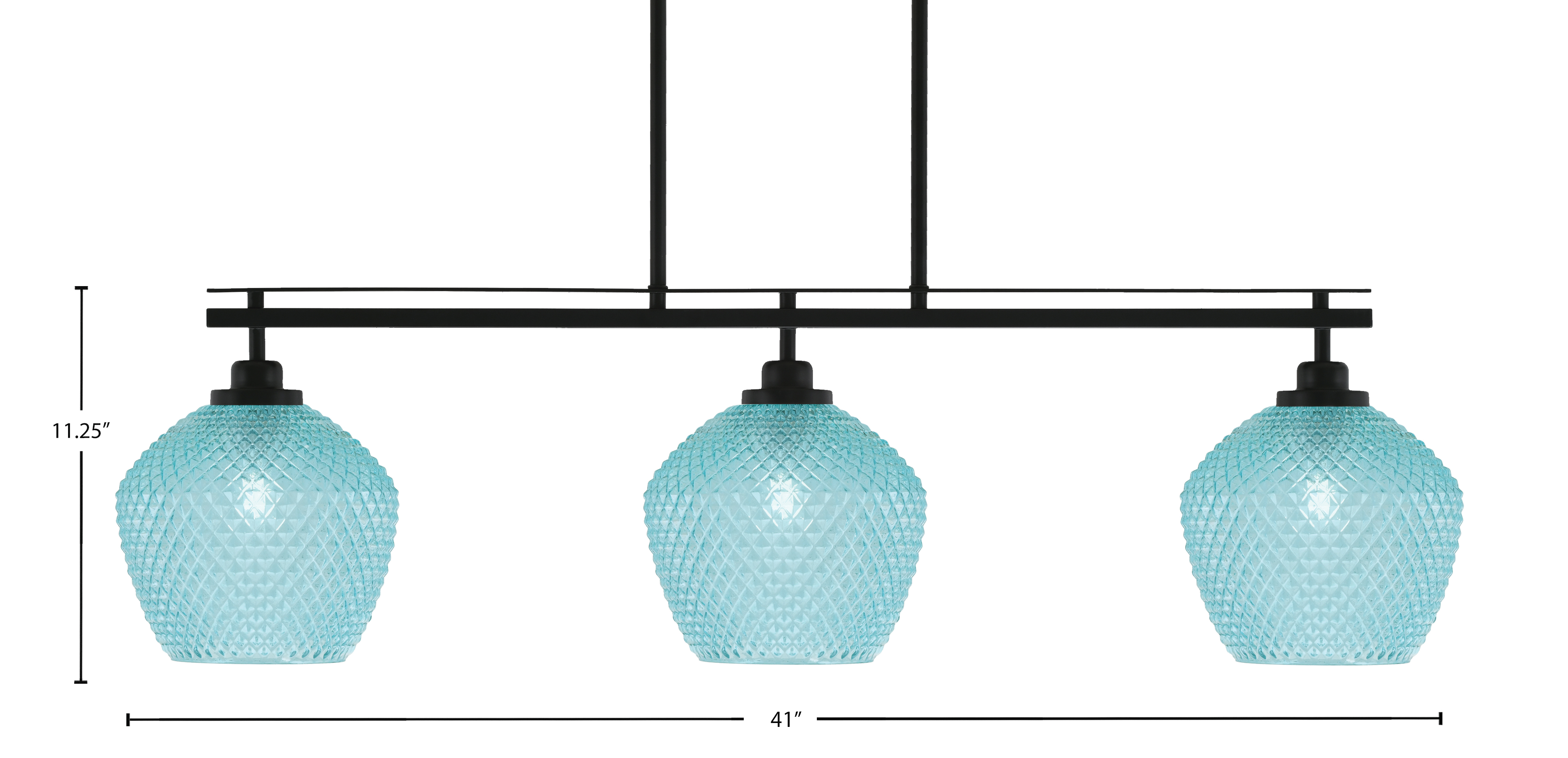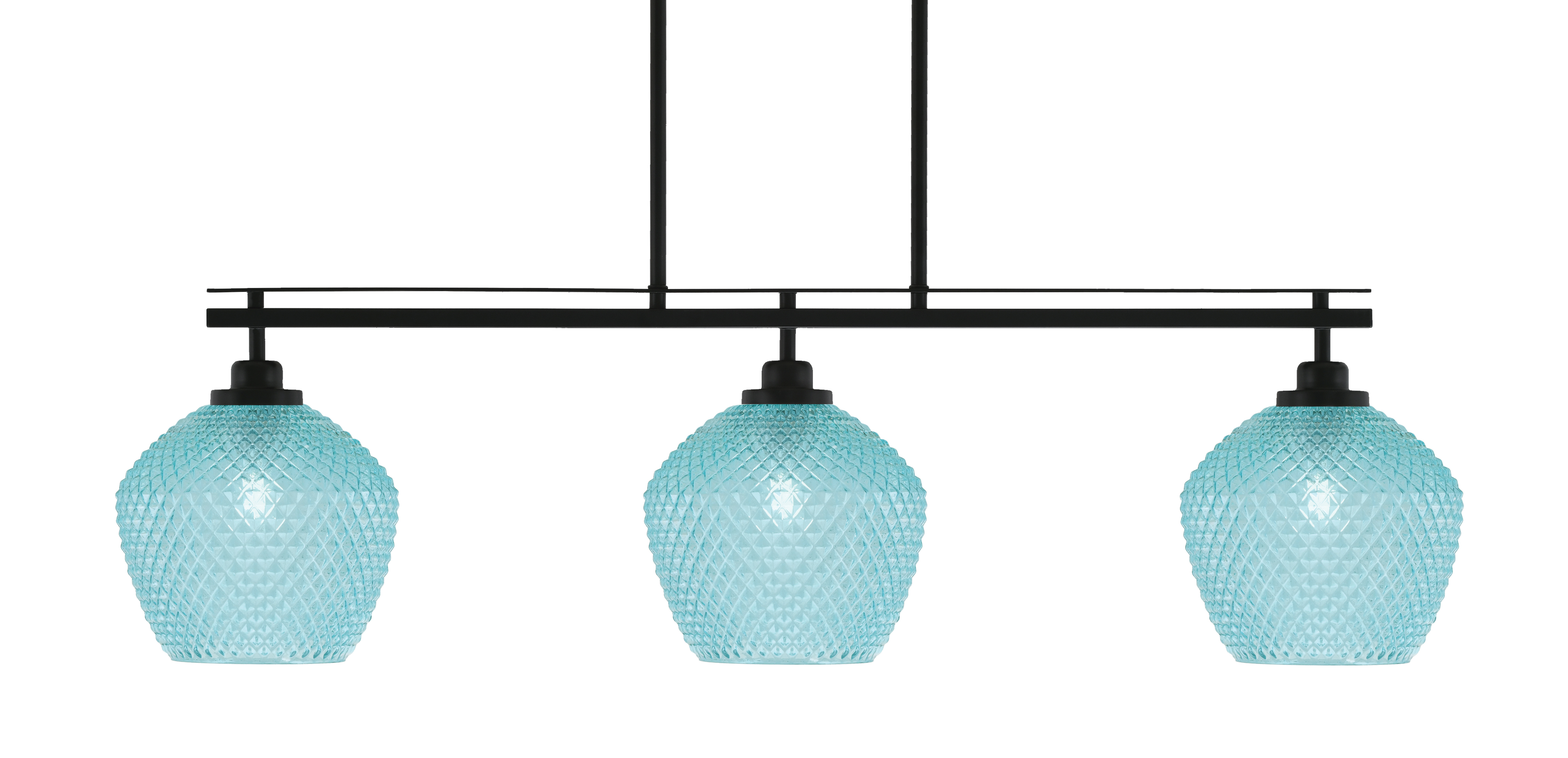 Toltec Lighting 2636-MB-4925 Odyssey 3 Light Island Light, Matte Black Finish, 9″ Turquoise Textured Glass