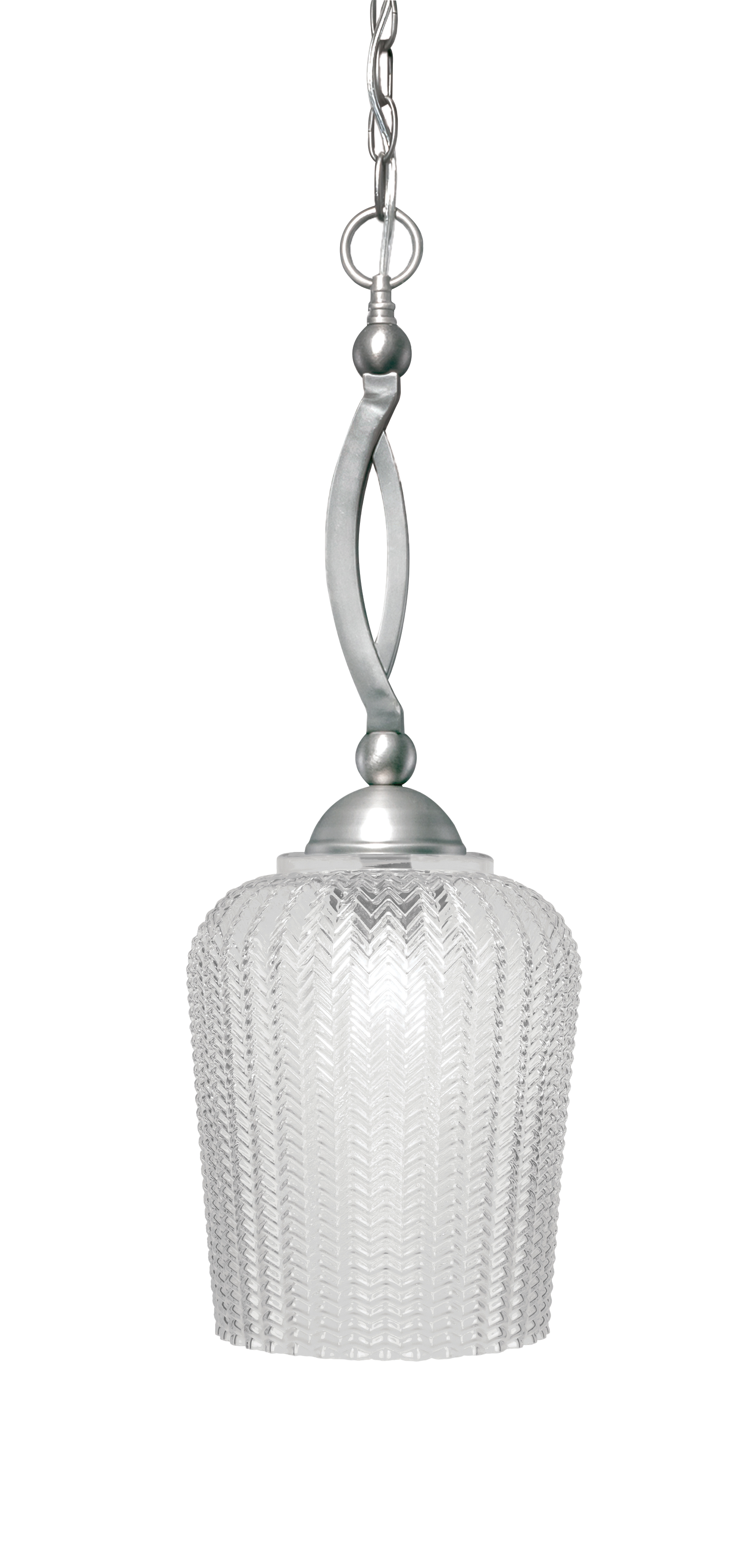 Toltec Lighting 271-BN-4280 Bow Chain Hung Pendant, Brushed Nickel Finish, 9″ Clear Textured Glass