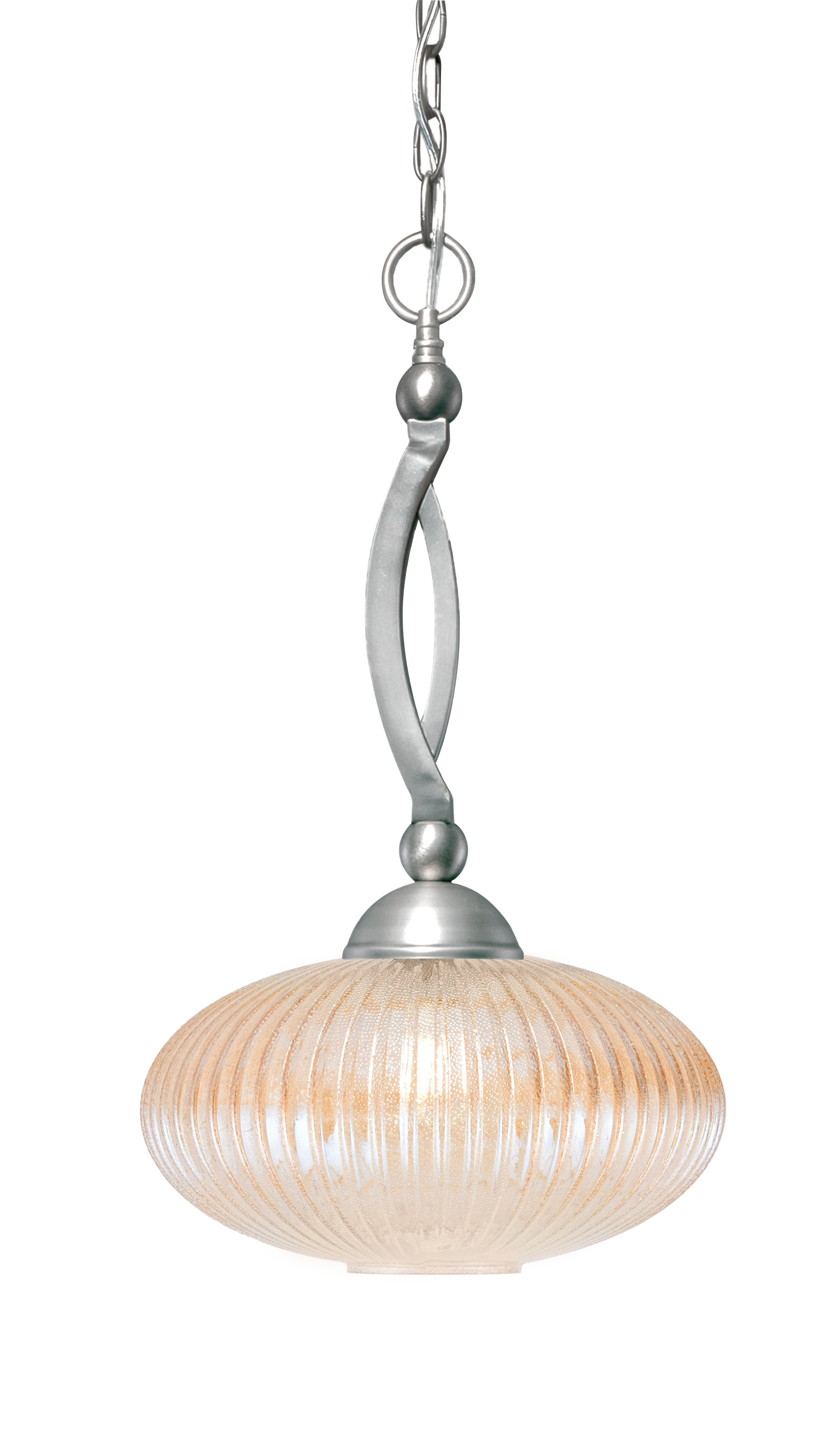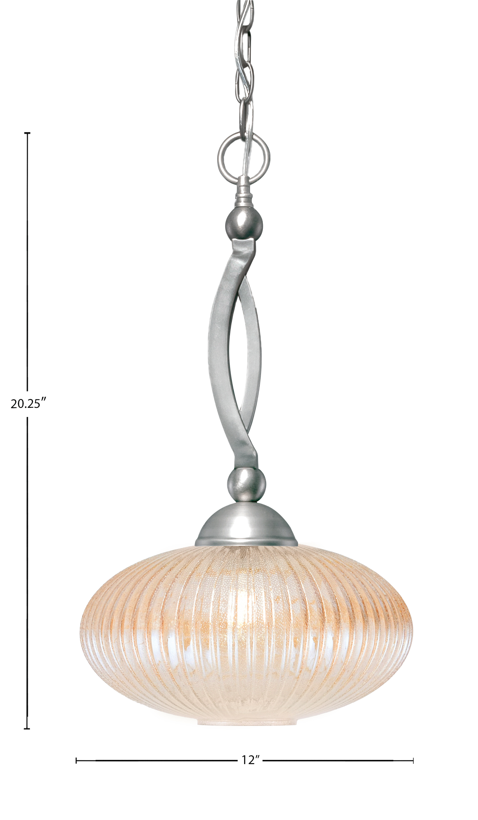 Toltec Lighting 271-BN-4653 Bow Chain Hung Pendant, Brushed Nickel Finish, 12″ Amber Micro Bubble Ribbed Glass