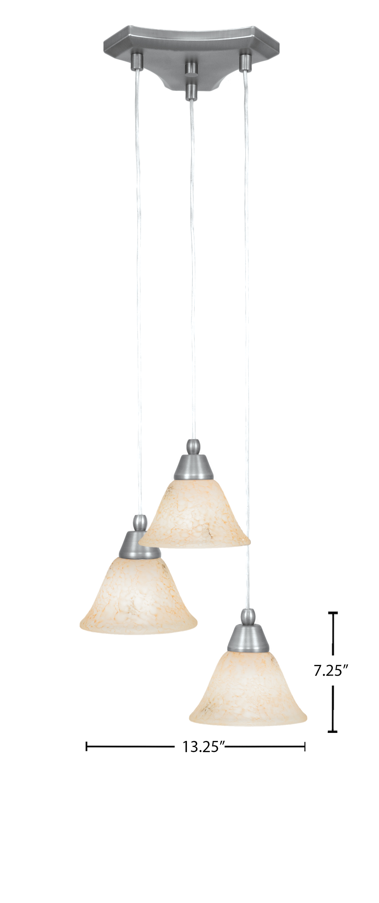 Toltec Lighting 28-BN-508 Europa 3 Light Cord Cluster Pendalier, Brushed Nickel Finish, 7″ Italian Marble Glass