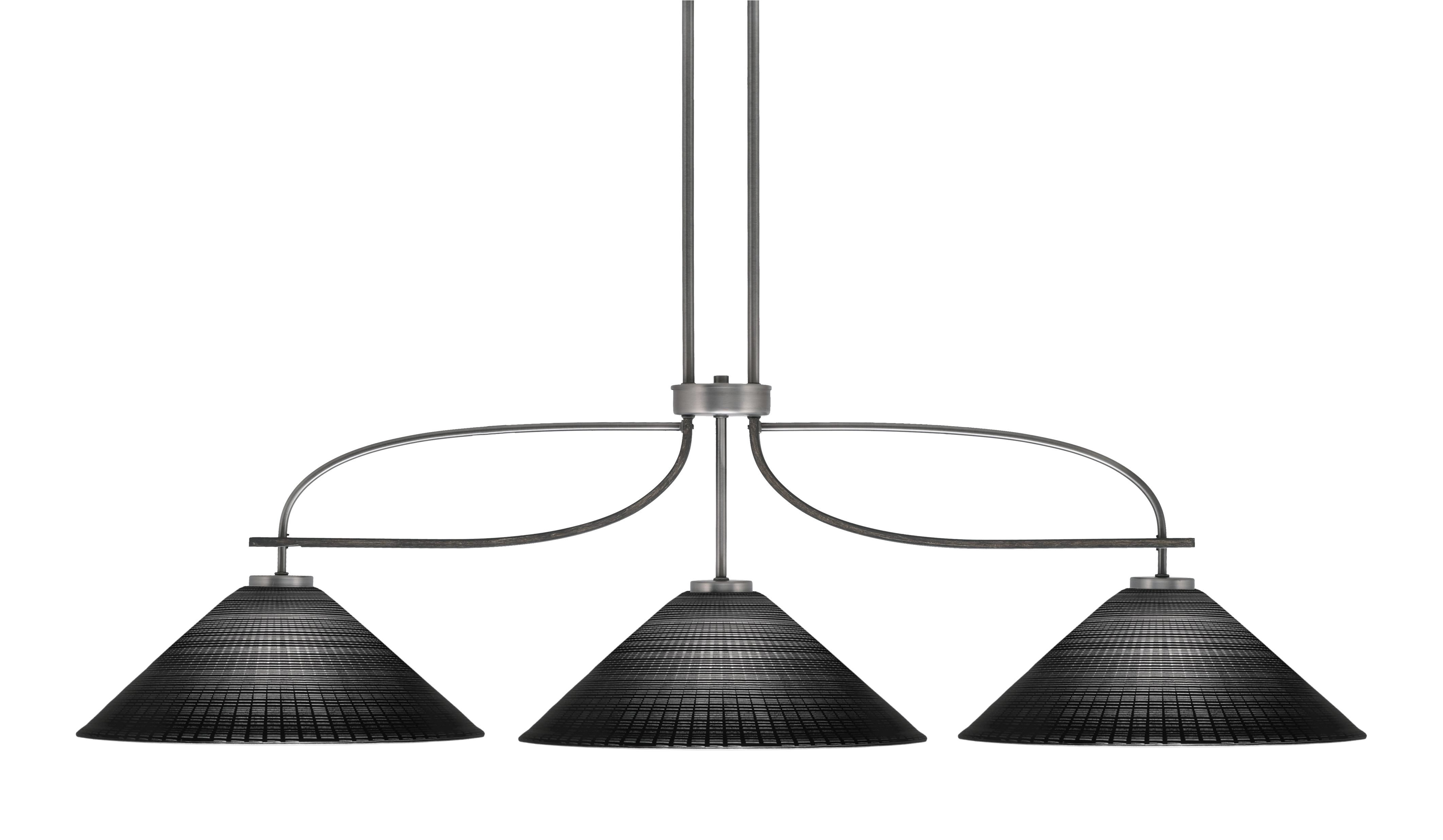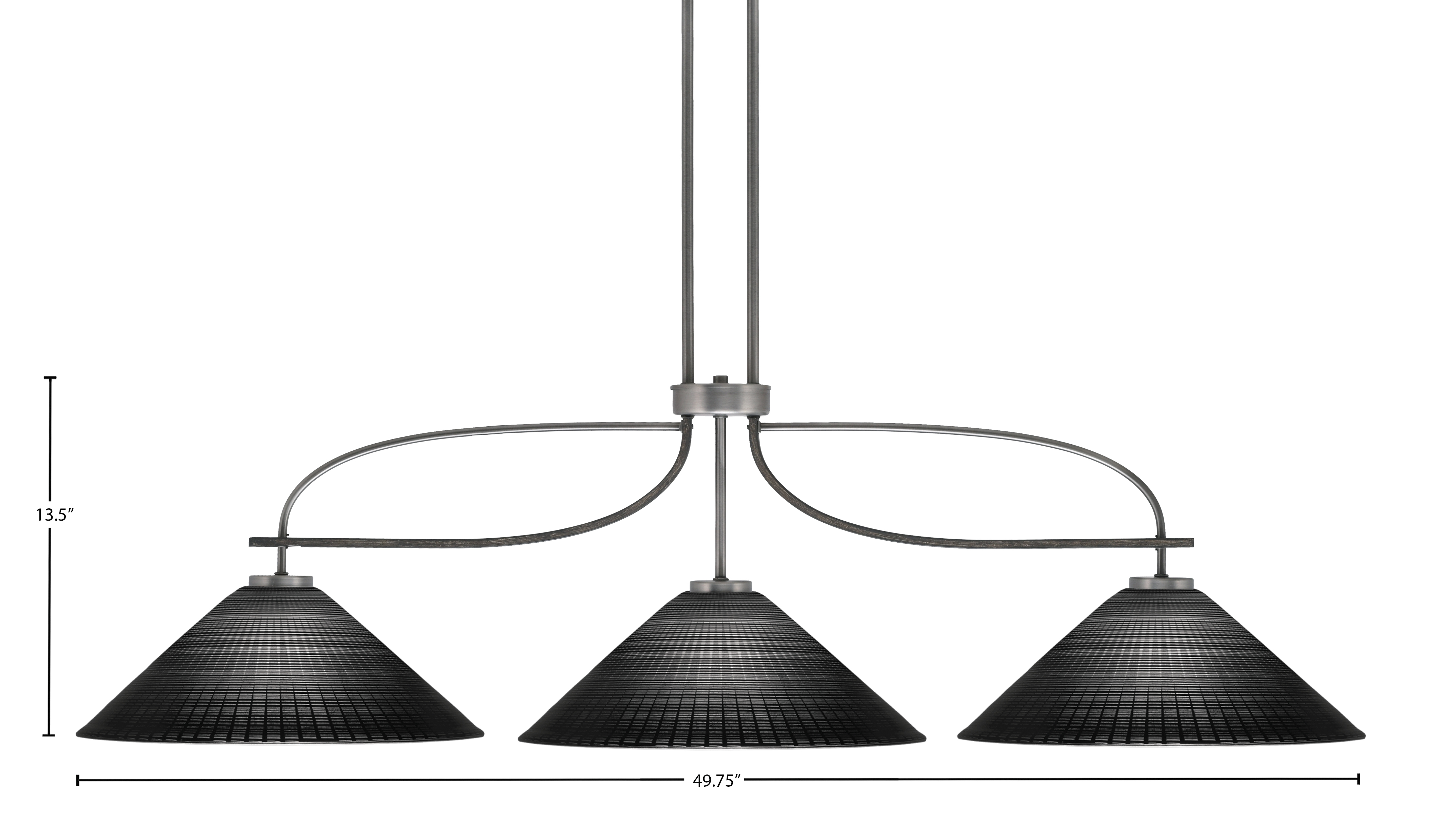 The Monterey 3-Light Bar combines rustic charm with modern sophistication. Its frame features a rich graphite finish accented with painted distressed wood-look metal, creating depth and texture that complement a variety of interiors. The three 16″ black matrix glass shades provide a bold visual statement while softly diffusing light, making it ideal for bathrooms, kitchens, or over vanities.