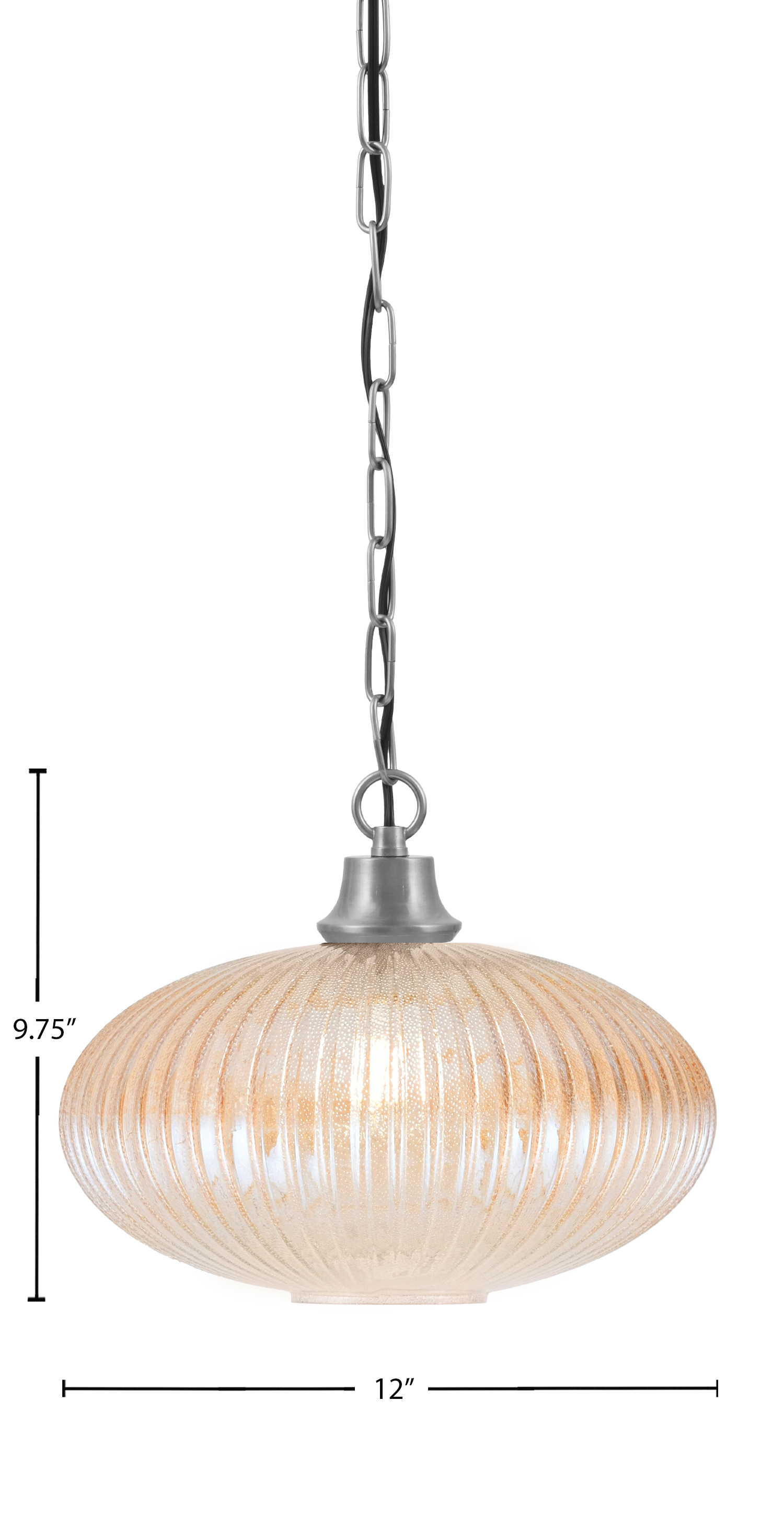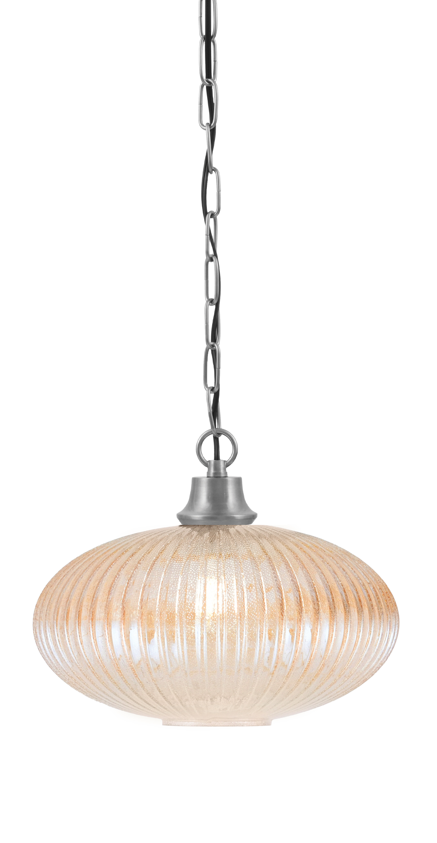 Toltec Lighting, 31-GP-4653, 1 Light Chain Pendant, Graphite Finish, 12″ Amber Micro Bubble Ribbed Glass Shade