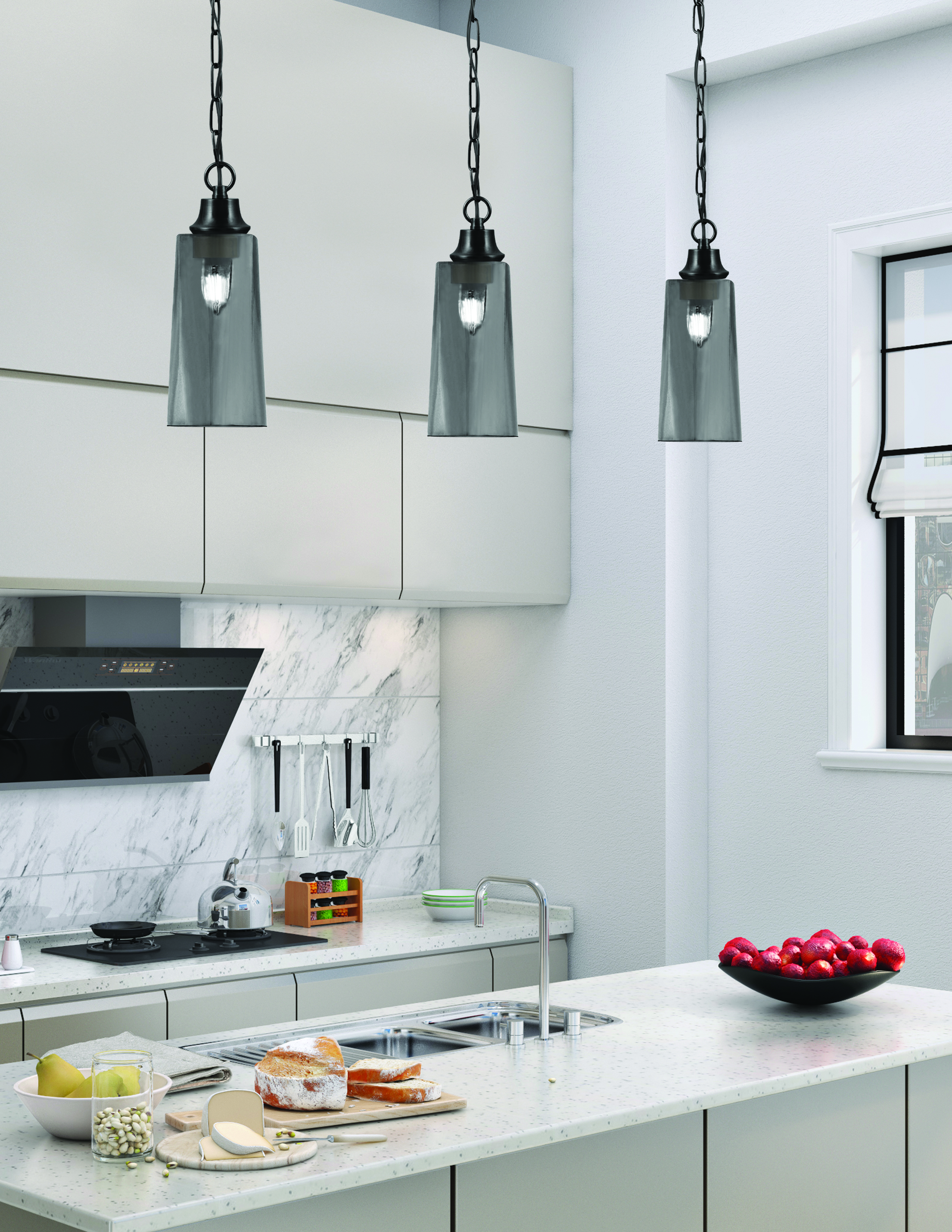 Toltec Lighting, 31-MB-292, 1 Light Chain Mini Pendant, Matte Black Finish, 5″ W X 9.75″ H Smoke Bubble Glass Shade