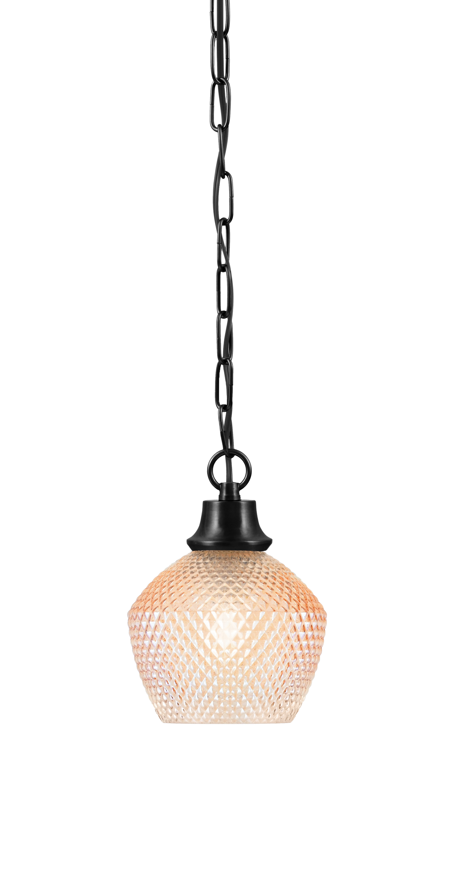 Toltec Lighting, 31-GP-4623, 1 Light Chain Pendant, Matte Black Finish, 6″ Amber Textured Glass Shade
