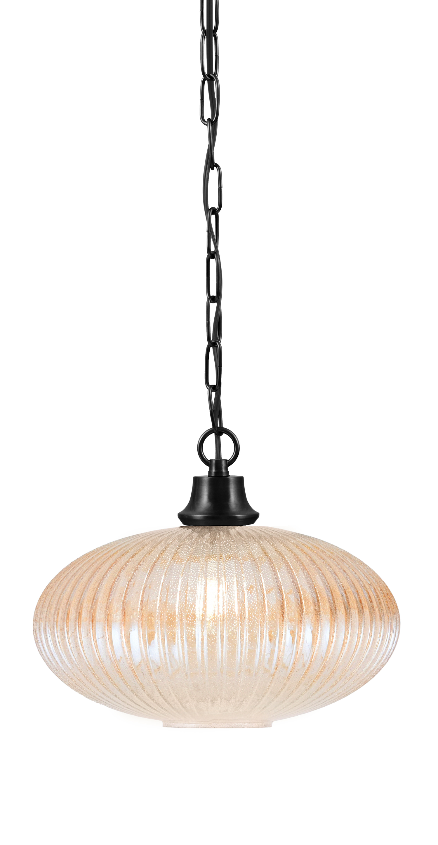 Toltec Lighting, 31-MB-4653, 1 Light Chain Mini Pendant, Matte Black Finish, 12″ Amber Micro Bubble Ribbed Glass Shade