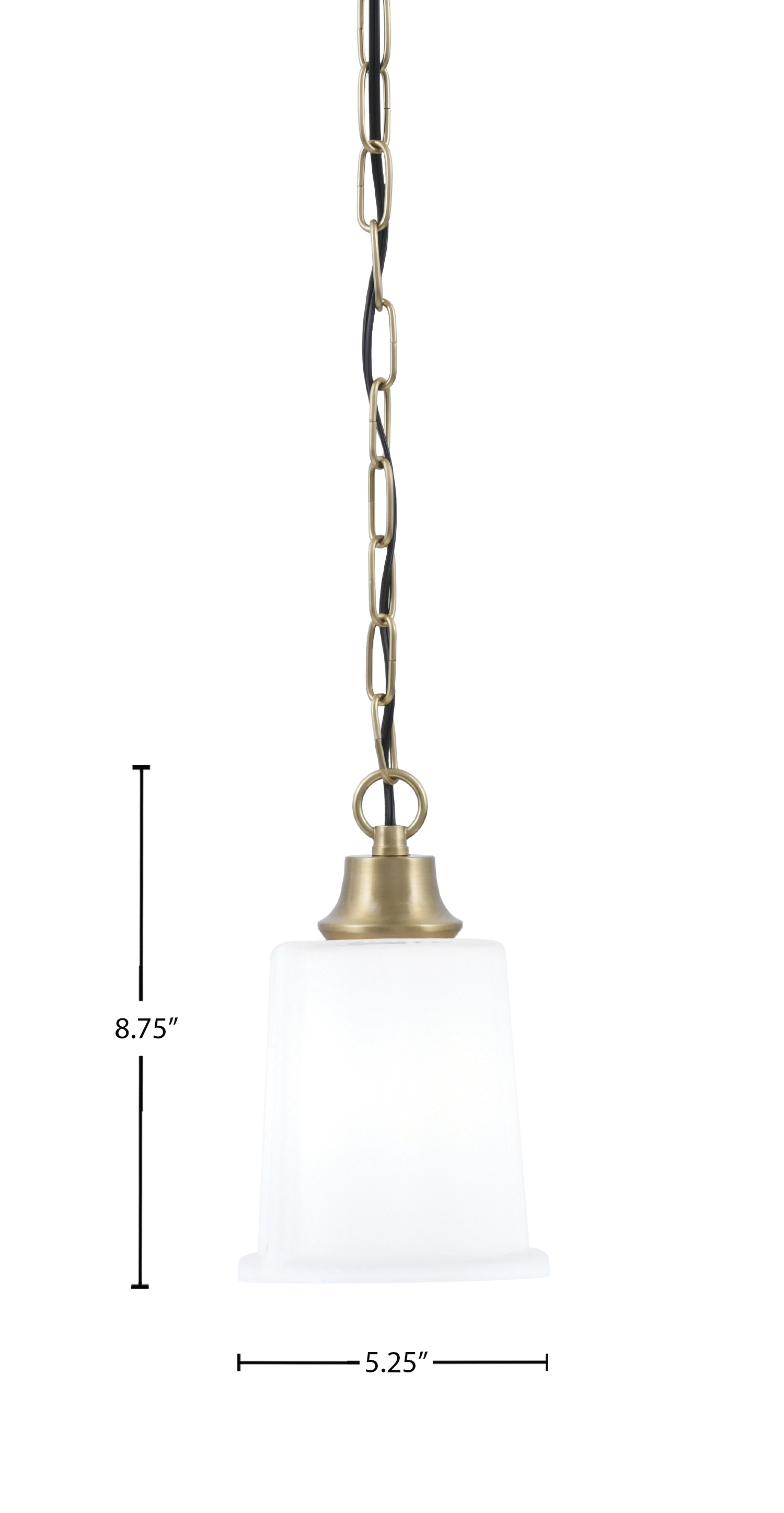 Toltec Lighting, 31-NAB-5031, 1 Light Chain Mini Pendant, New Age Brass Finish, 5.25″ White Opal Glass Shade