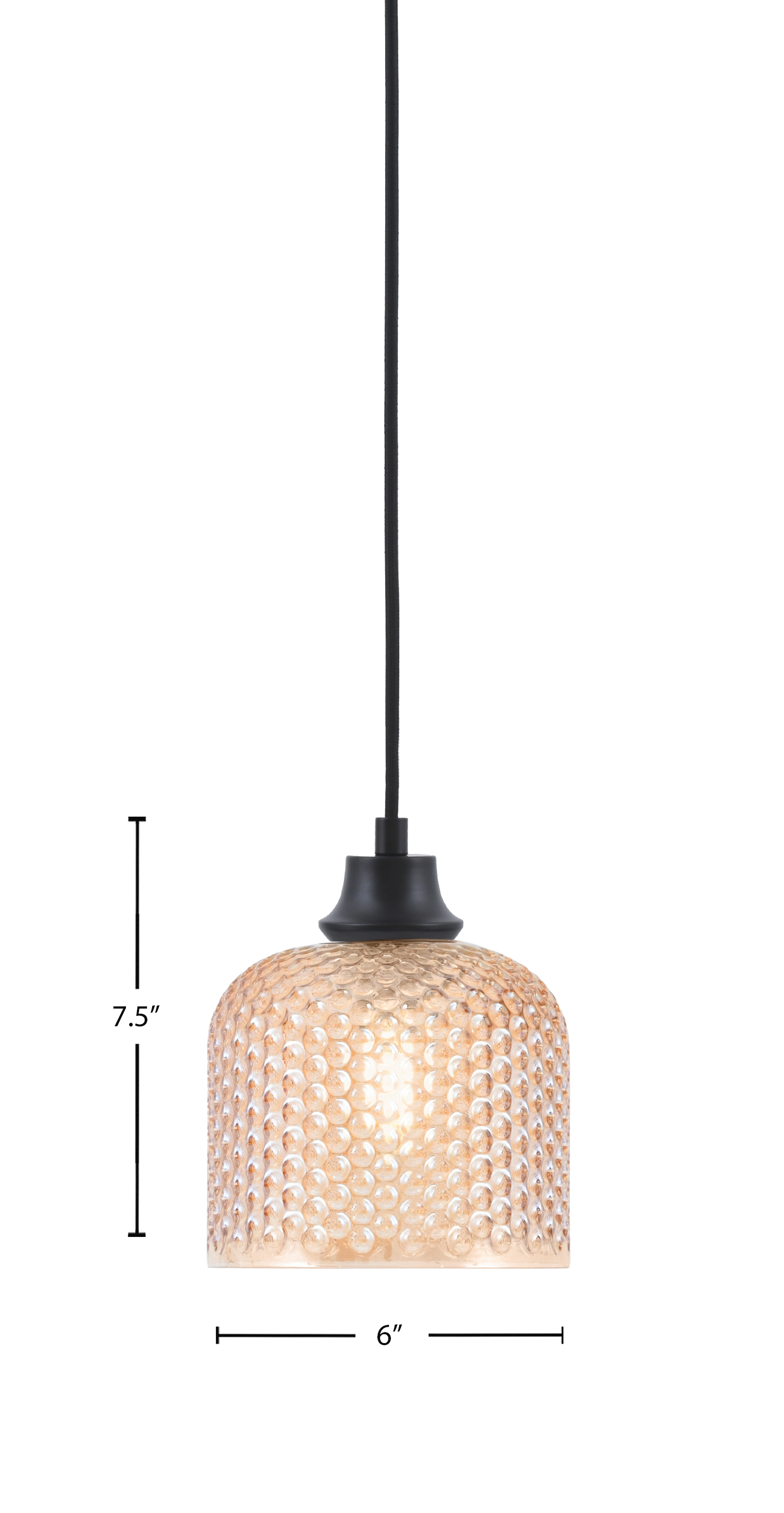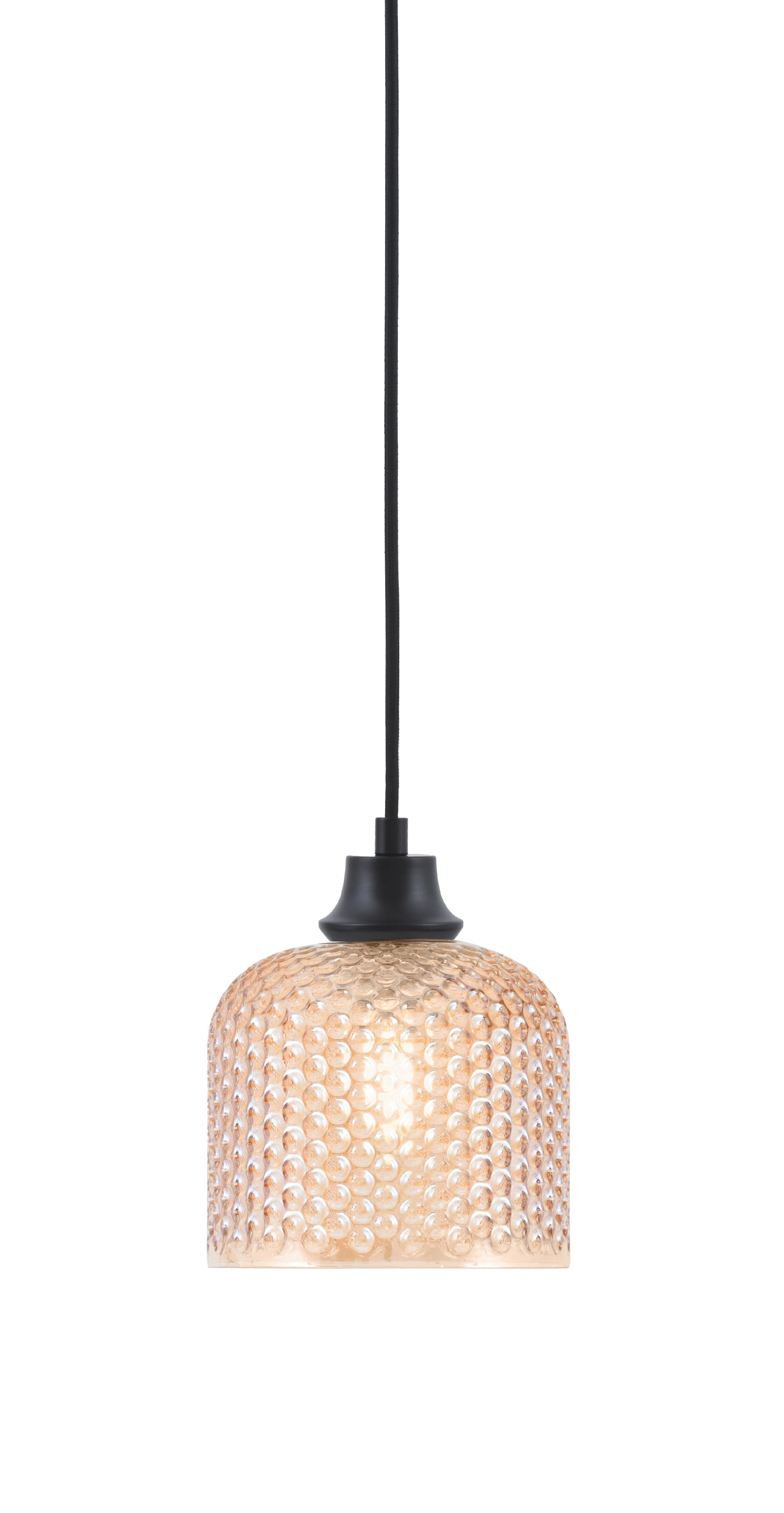 Toltec Lighting, 32-MB-4613, 1 Light Cord Pendant, Matte Black Finish, 6″ Amber Textured Glass Shade