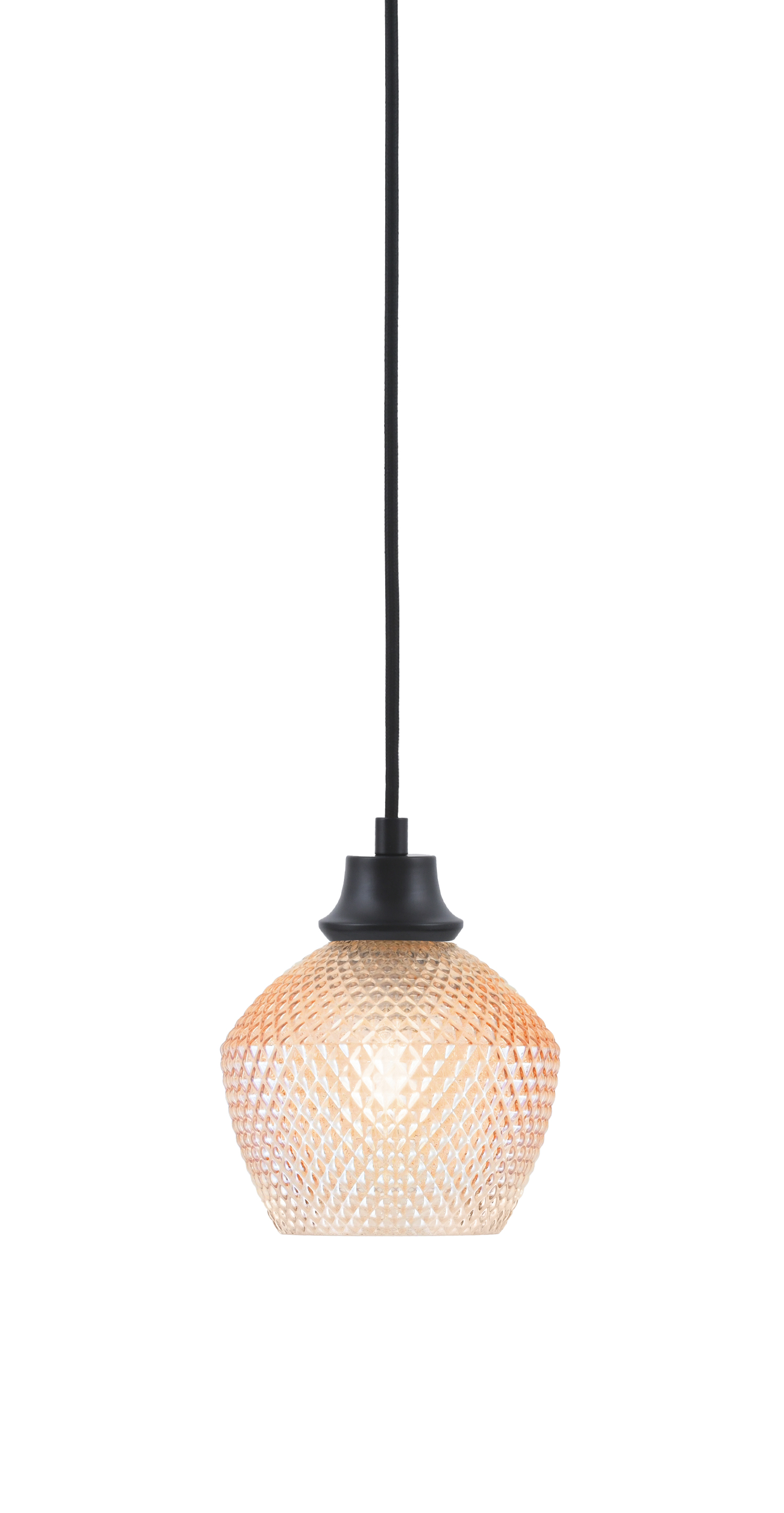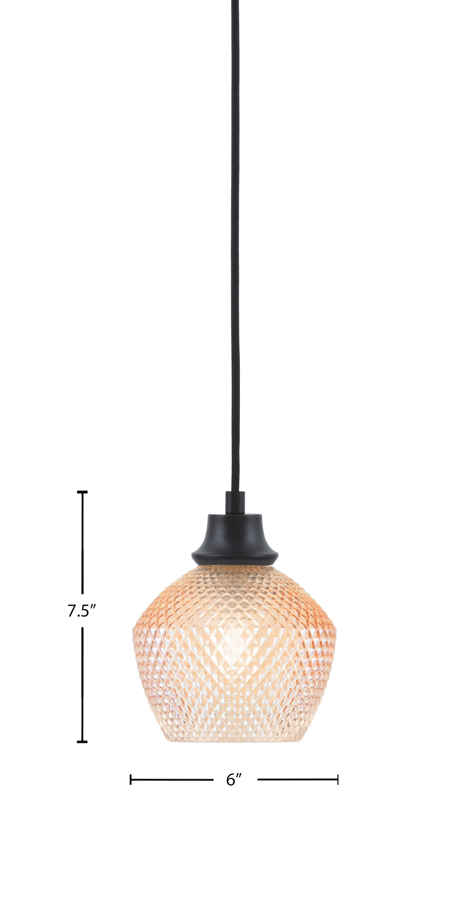 Toltec Lighting, 32-MB-4623, 1 Light Cord Pendant, Matte Black Finish, 6″ Amber Textured Glass Shade