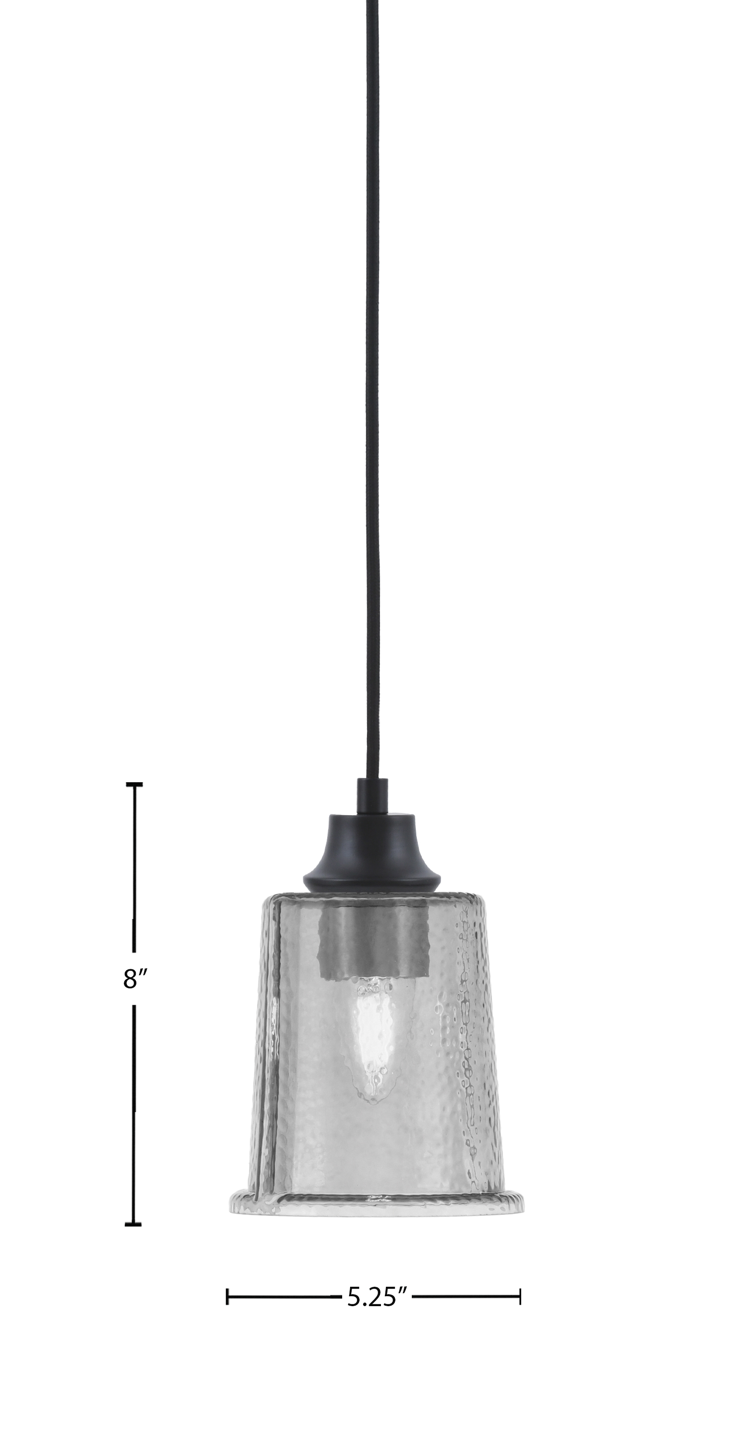 Enhance your space with the Cord Hung Pendant in a matte black finish, featuring a 5.25″ smoke bubble glass shade. Its modern silhouette and textured glass cast a soft, ambient glow, adding sophisticated style and subtle drama to any room.