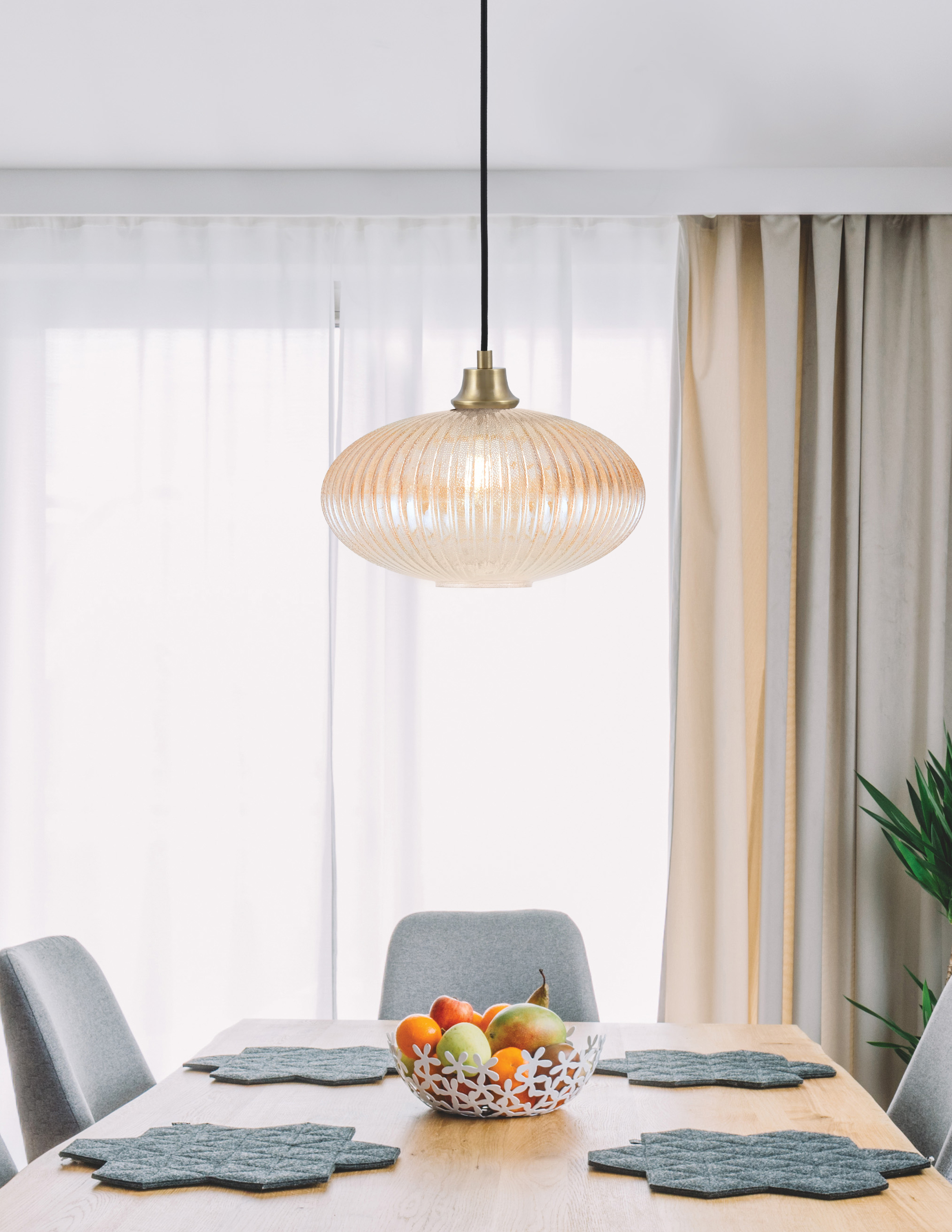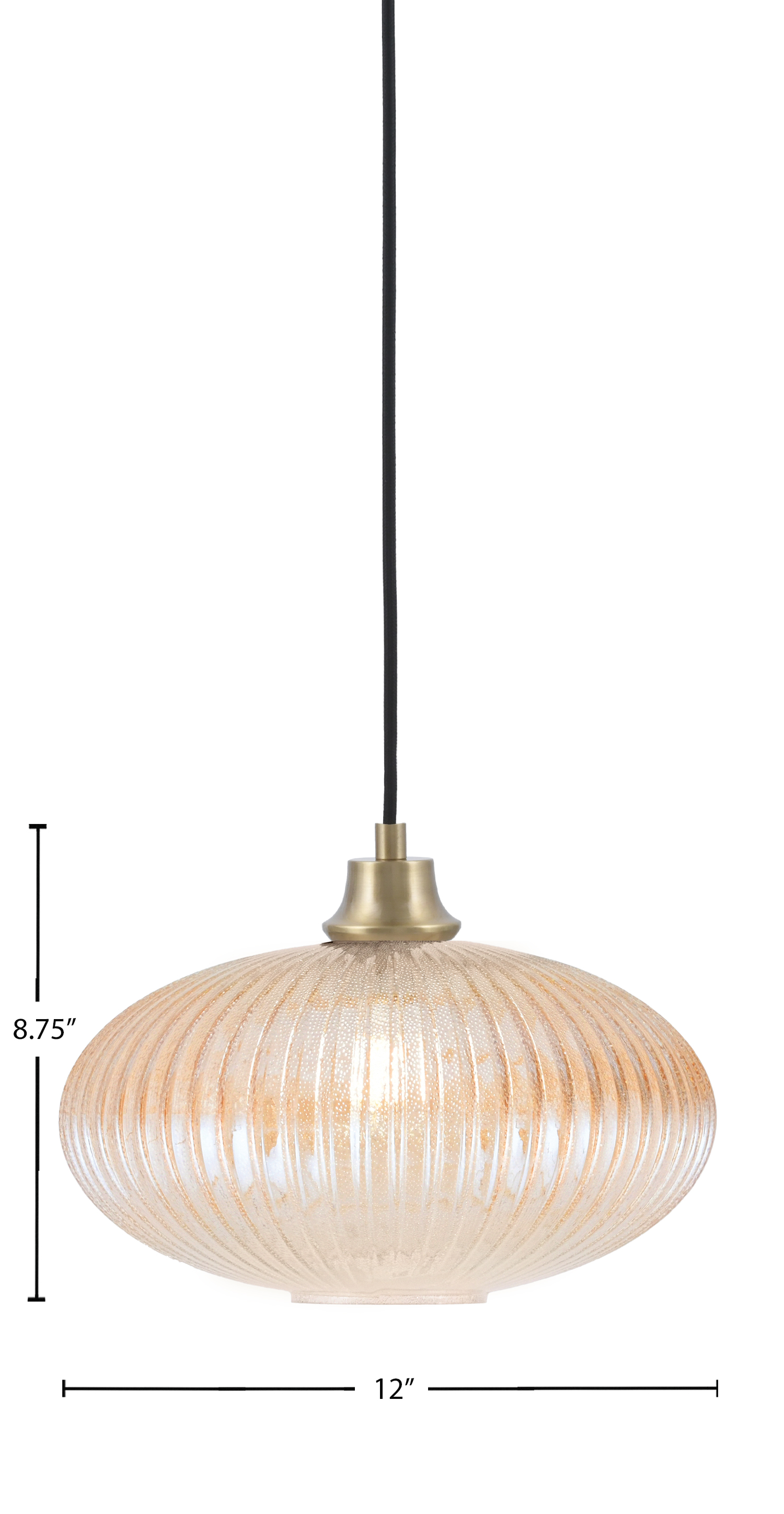Toltec Lighting 32-NAB-4653 Cord Mini Pendant, New Age Brass Finish, 12″ Amber Micro Bubble Ribbed Glass