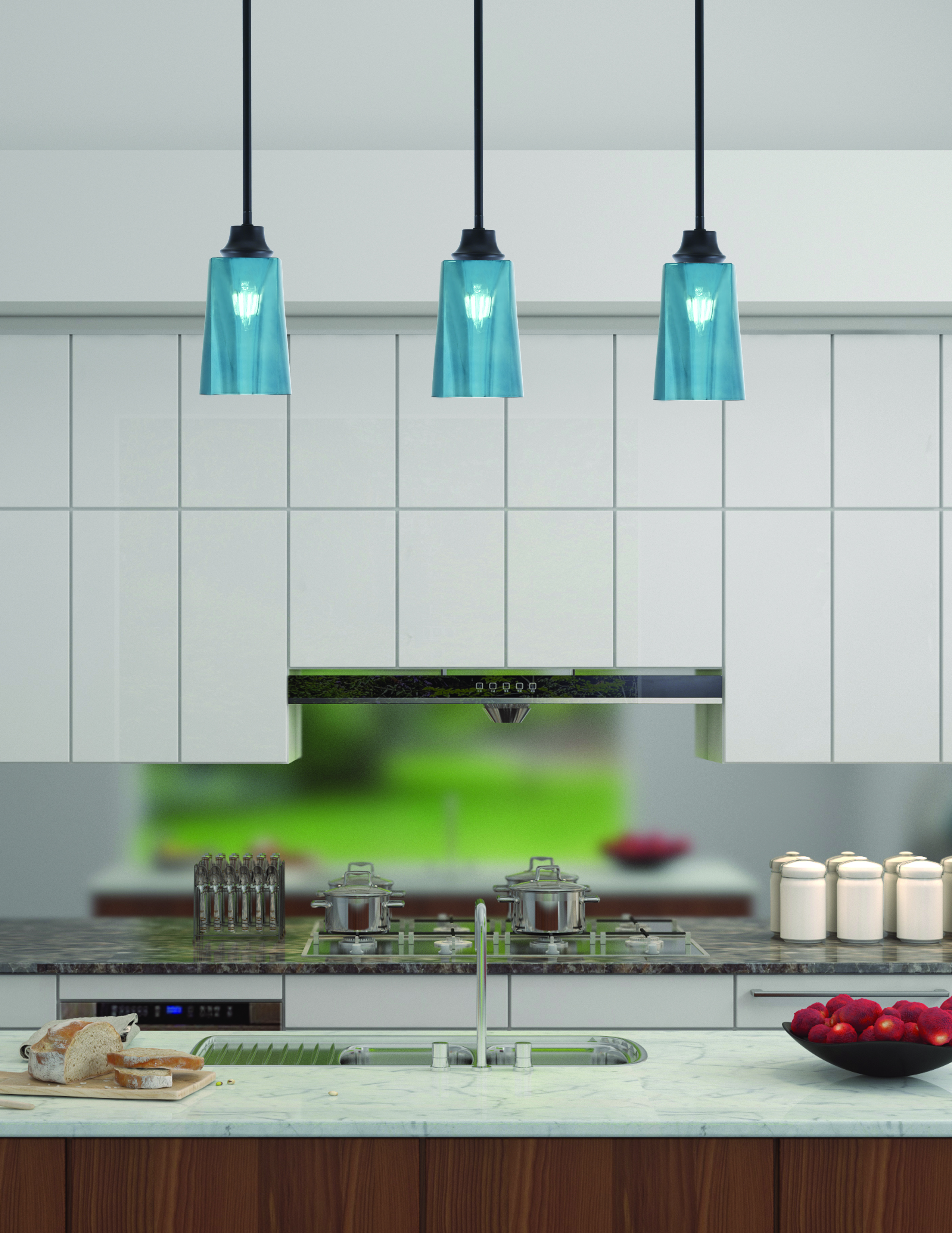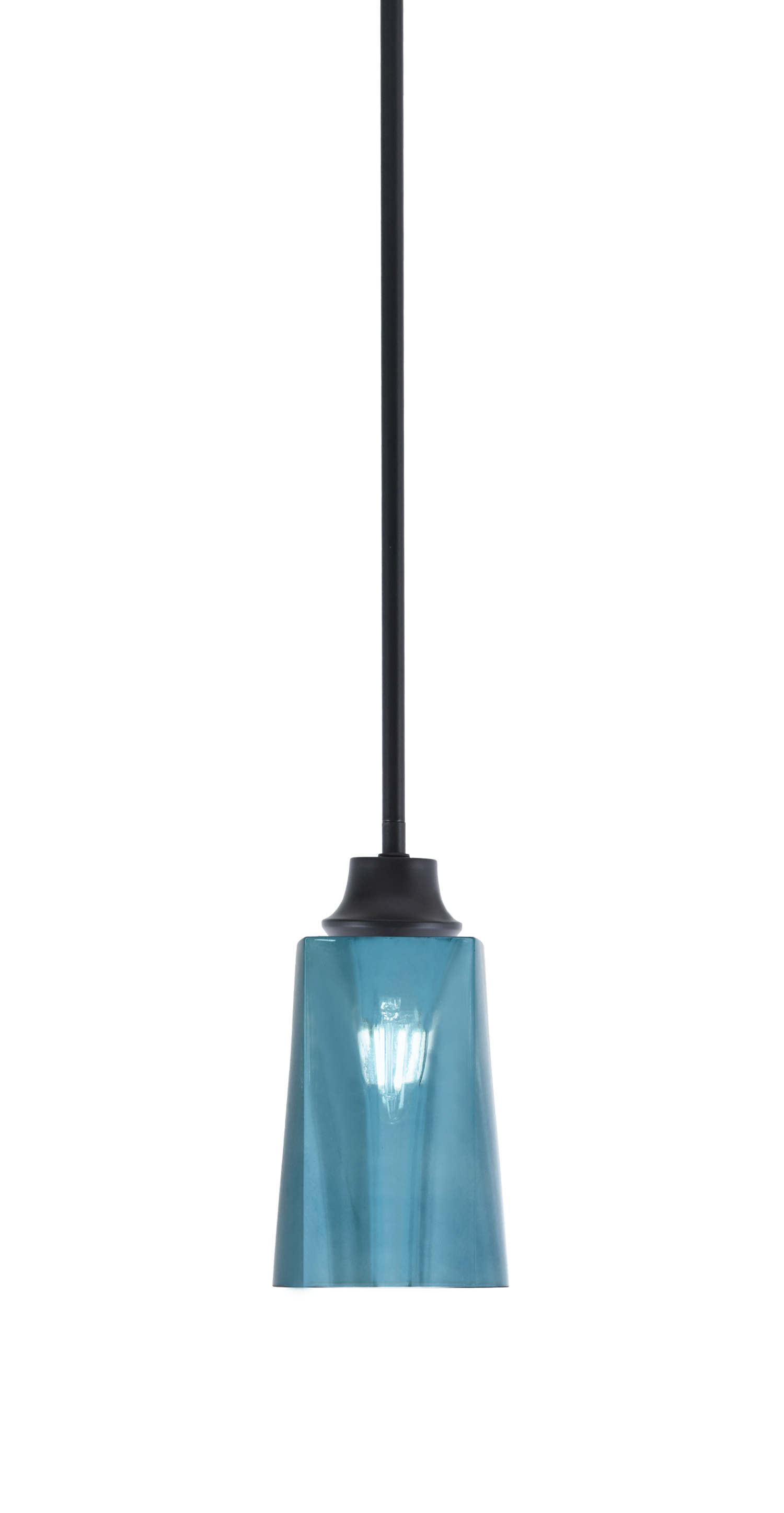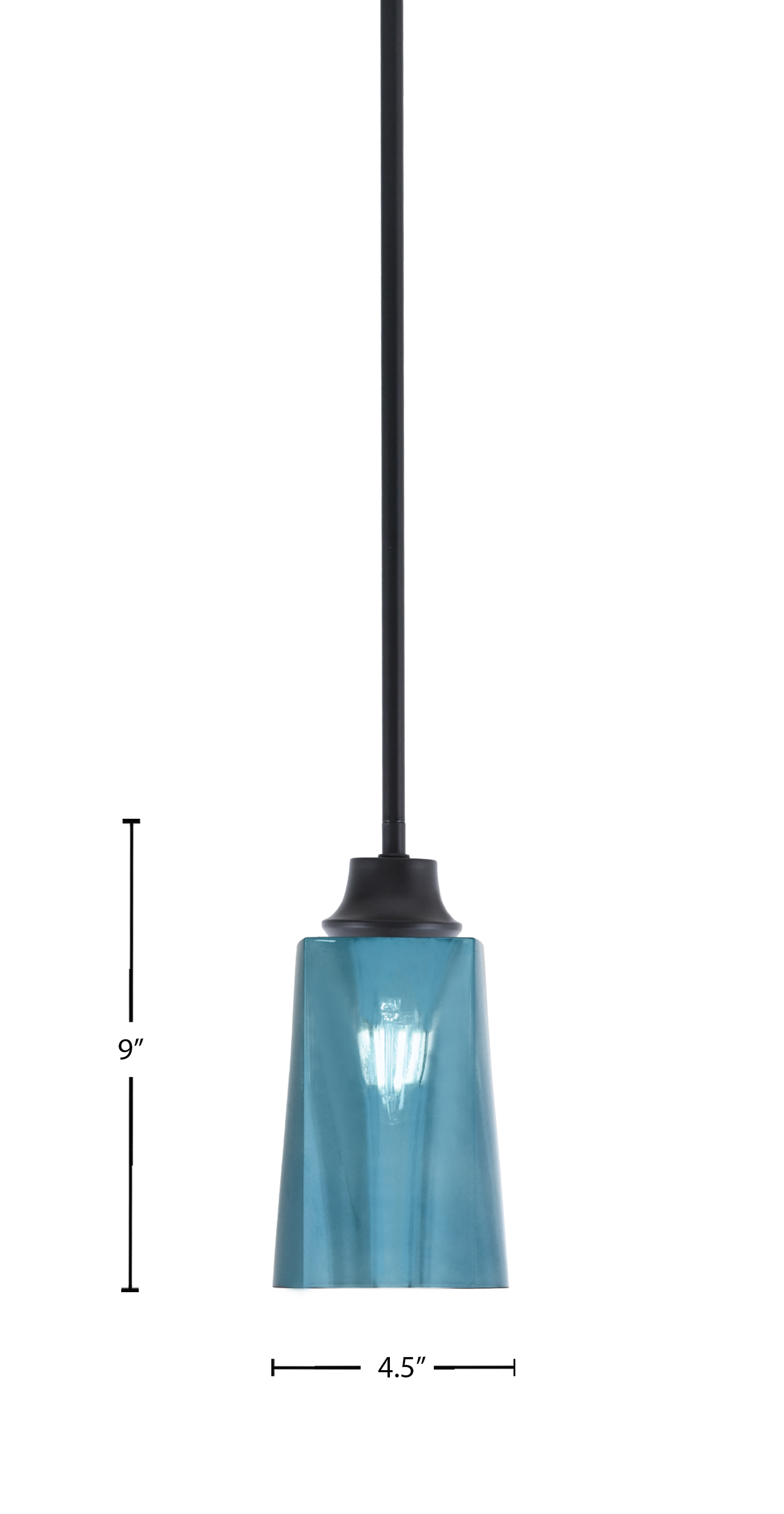 Toltec Lighting, 33-MB-265, 1 Light Stem Mini Pendant, Matte Black Finish, 4.5″ W x 6.5″ H Blue Gradient Glass Shade