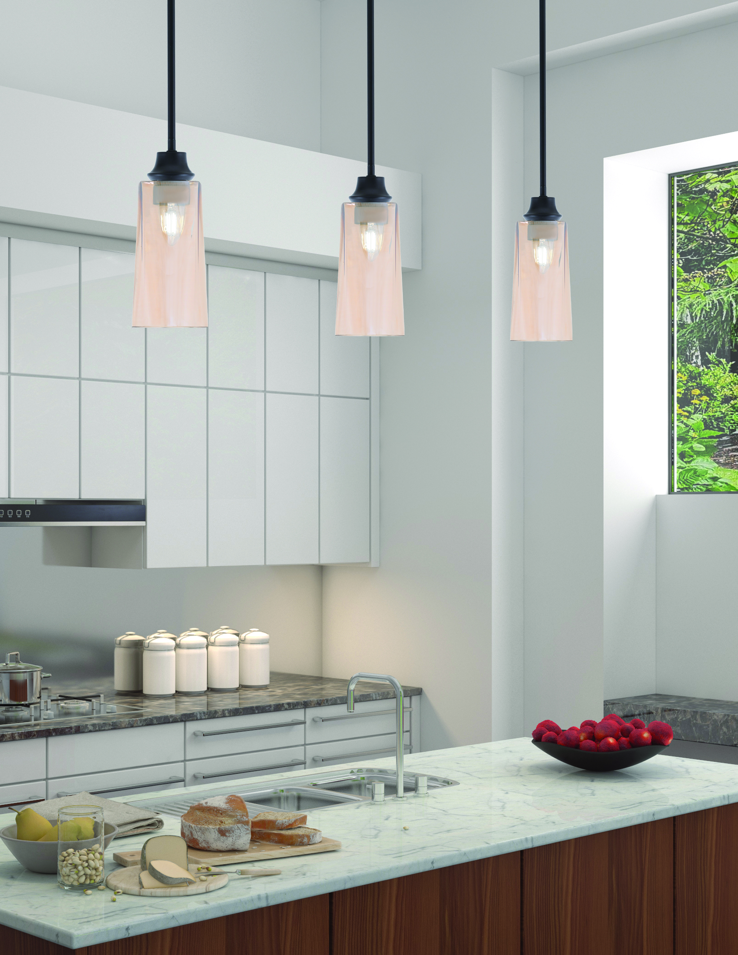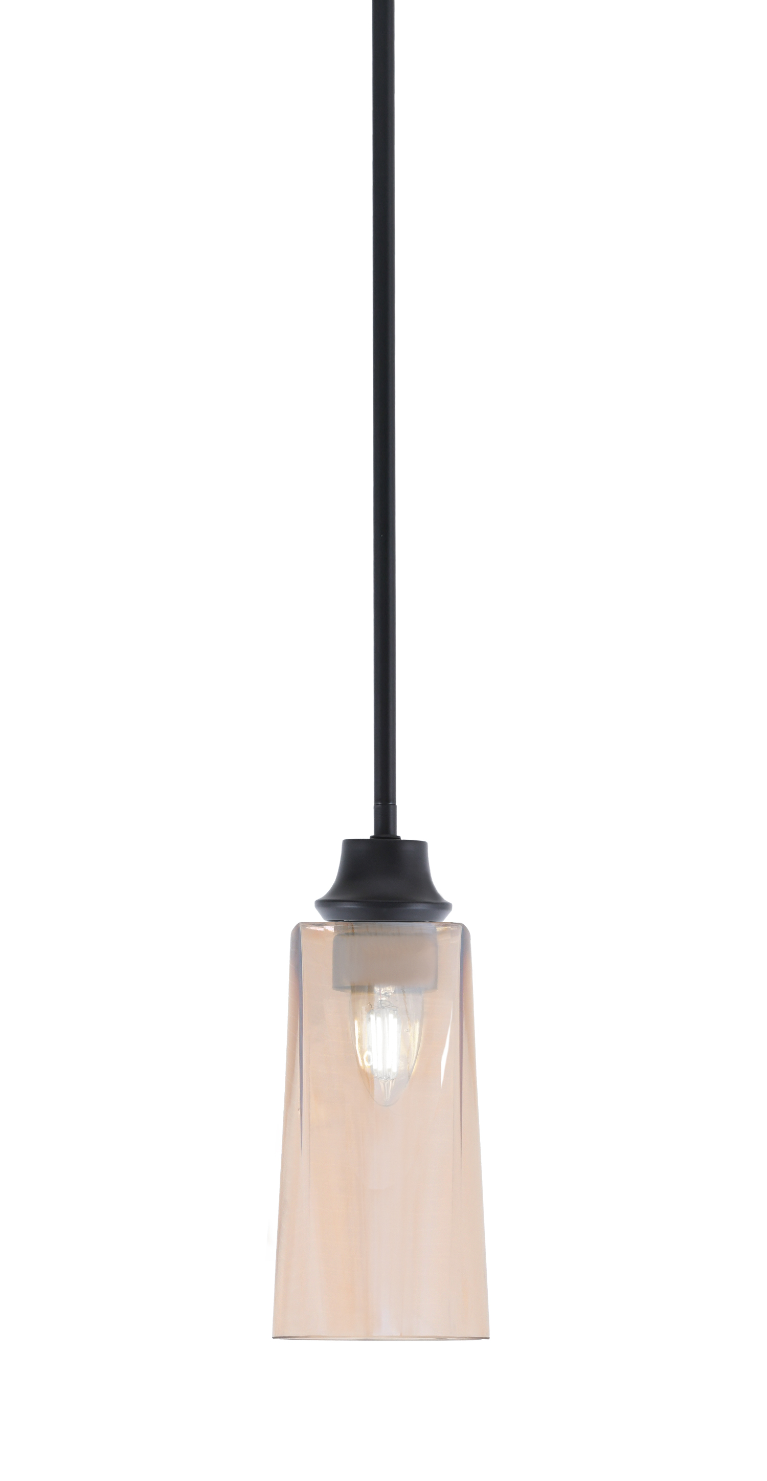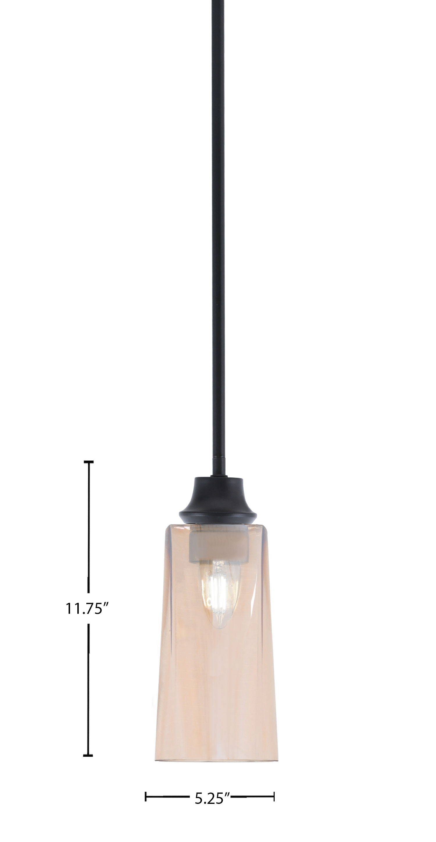 Toltec Lighting, 33-MB-293, I Light Stem Mini Pendant, Matte Black Finish, 5″ W x 9.75″ H Amber Gradient Glass Shade