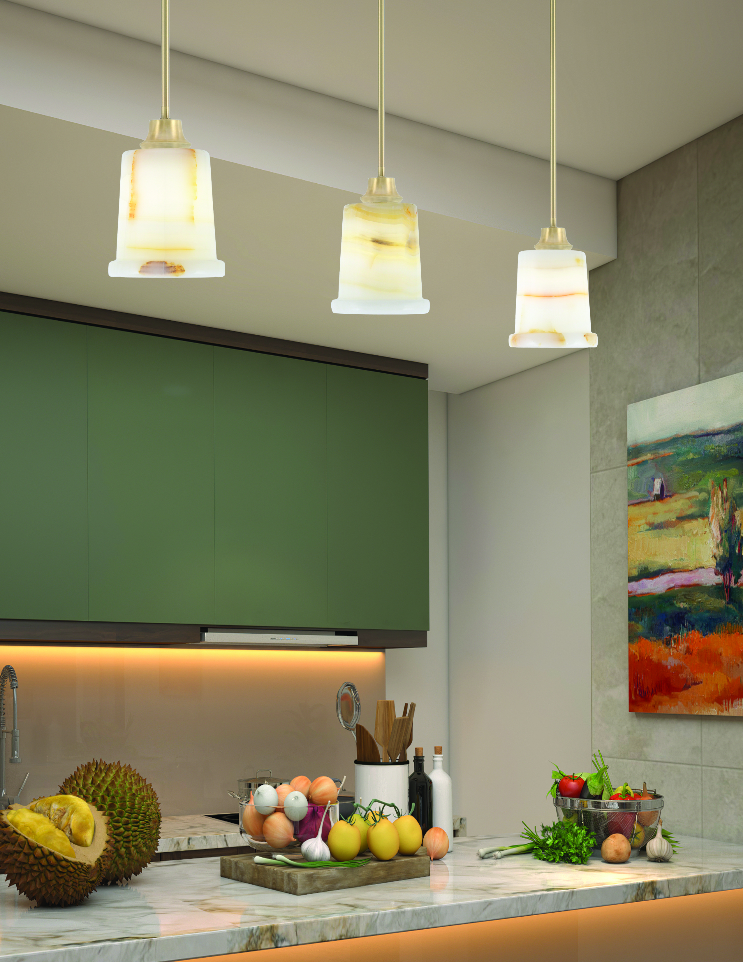 Toltec Lighting, 33-NAB-4128, 1 Light Stem Mini Pendant, New Age Brass Finish, 5″ Natural Stone Glass Shade