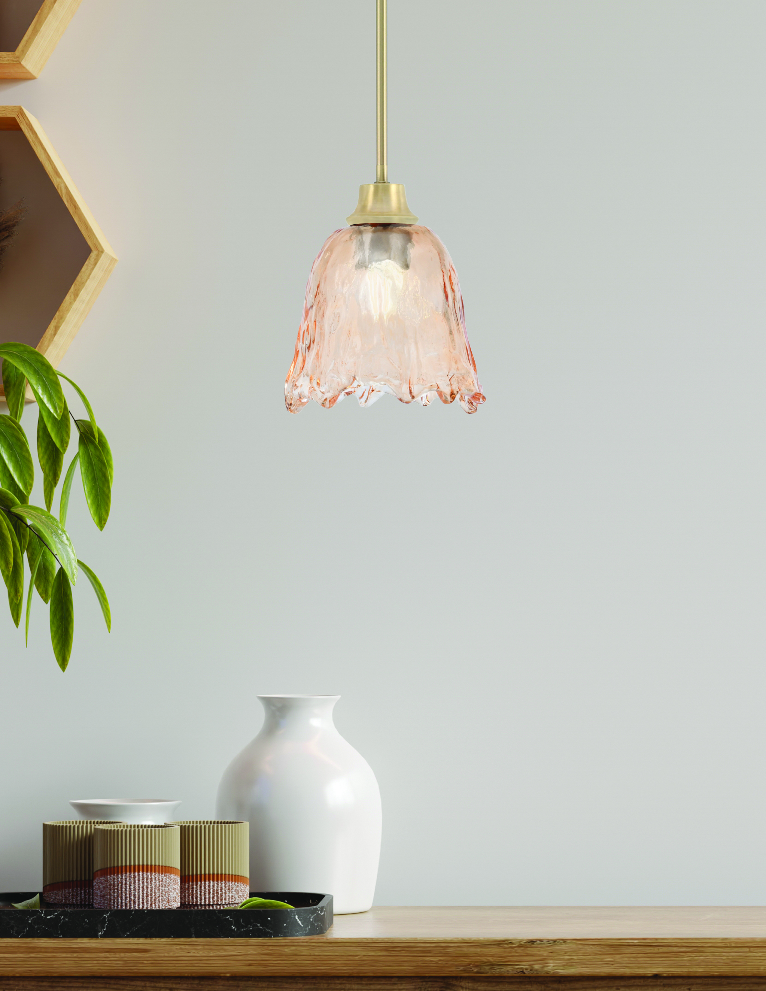 Toltec Lighting, 33-NAB-4233, 1 Light Stem Mini Pendant, New Age Brass Finish, 7″ Amber Lava Glass Shade